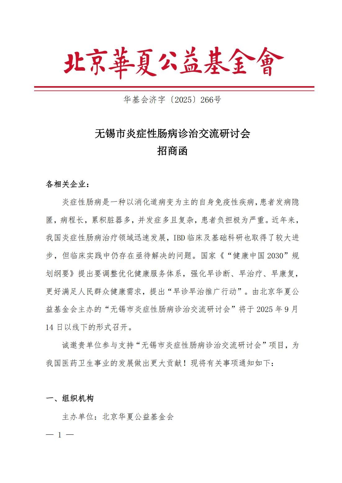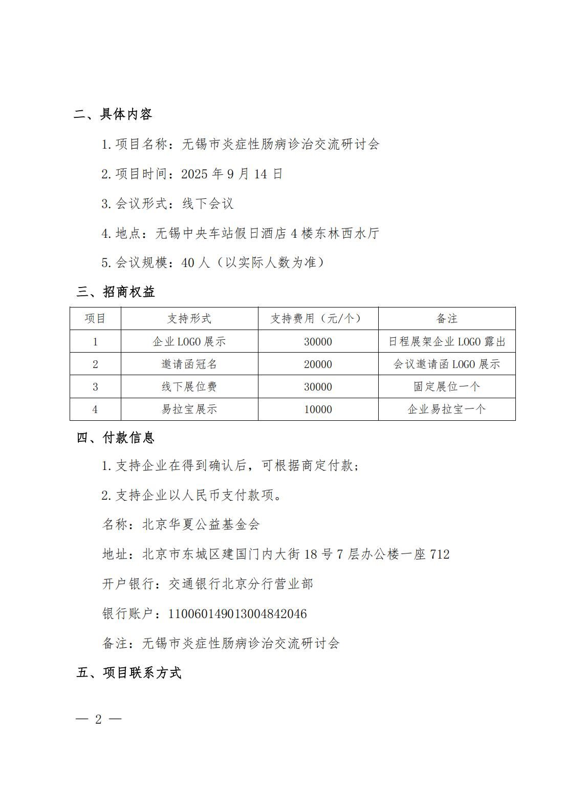 无锡市炎症性肠病诊治交流研讨会-招商函