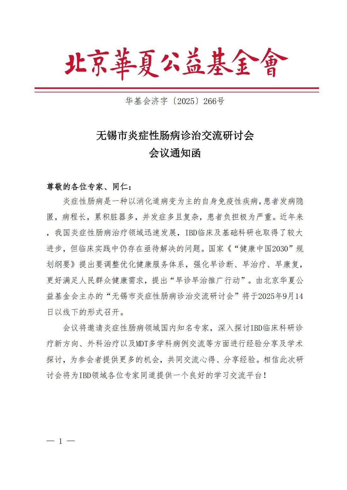 无锡市炎症性肠病诊治交流研讨会-会议通知函