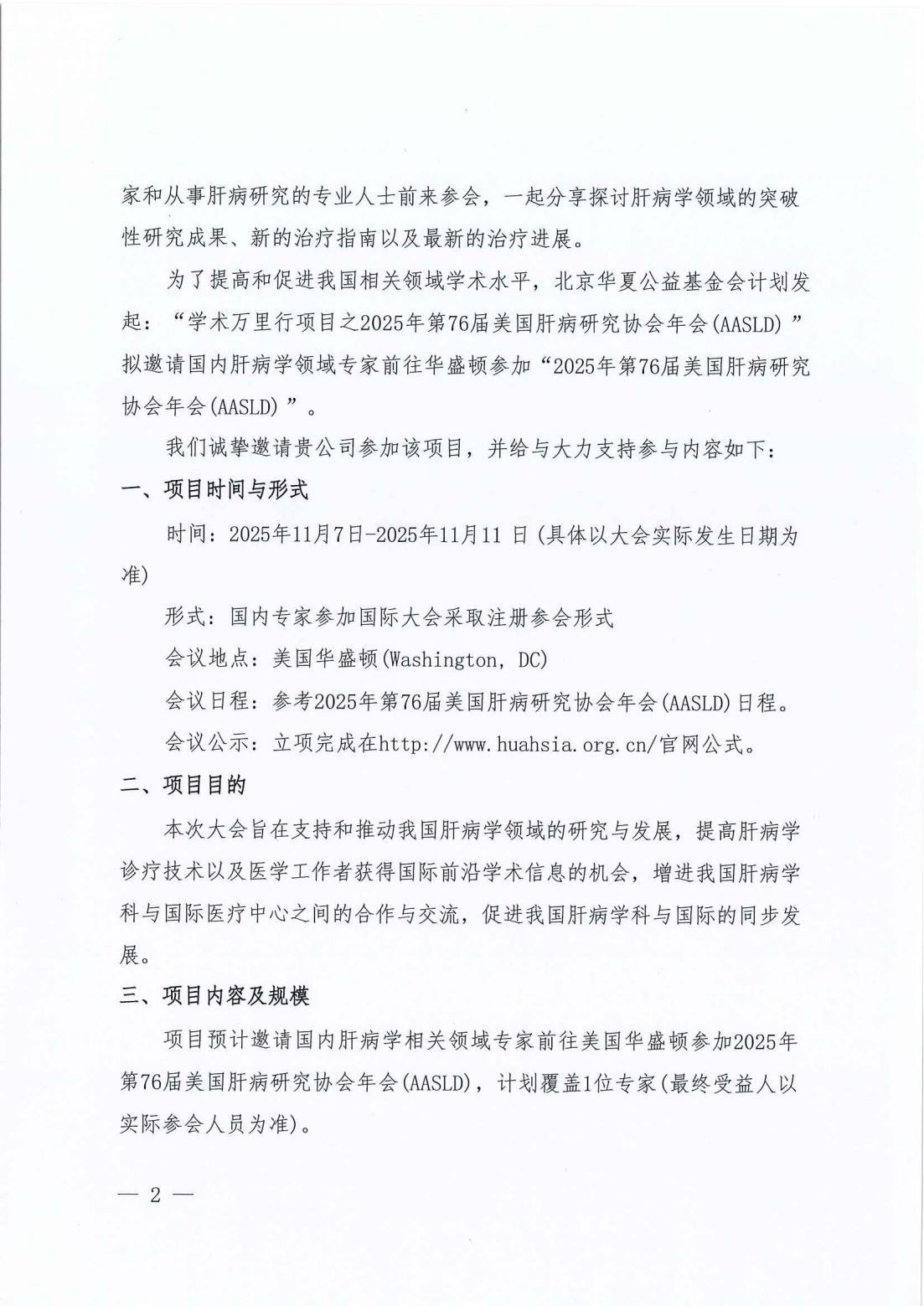 学术万里行项目之2025年第76届美国肝病研究协会年会(AASLD)-劝募函