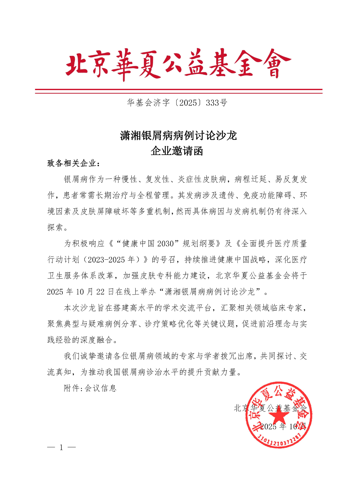 潇湘银屑病病例讨论沙龙-企业邀请函