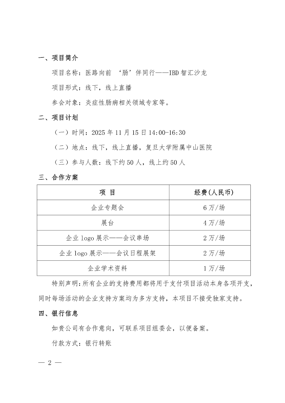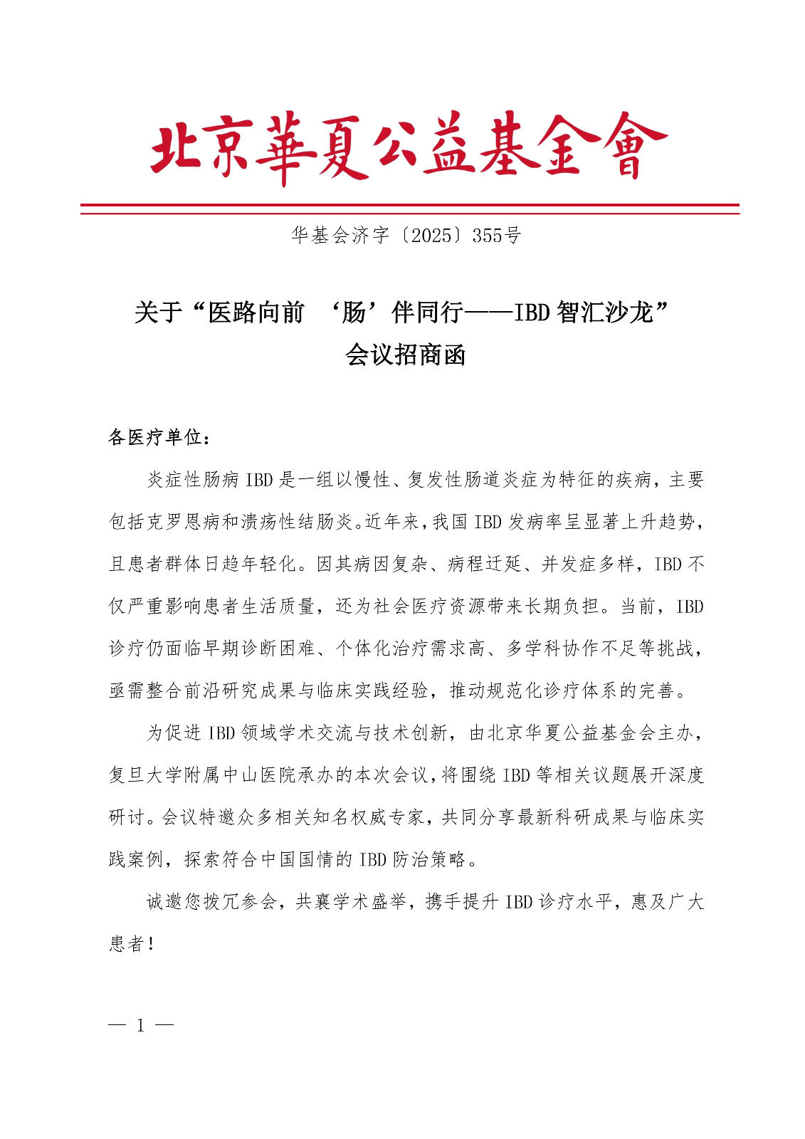 关于“医路向前 ‘肠’伴同行——IBD智汇沙龙”会议招商函