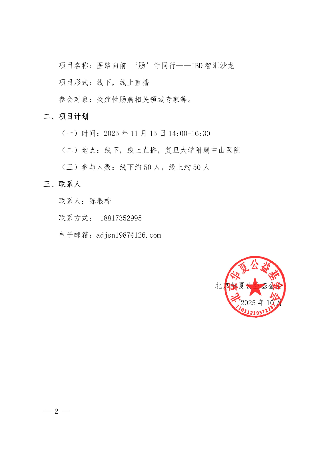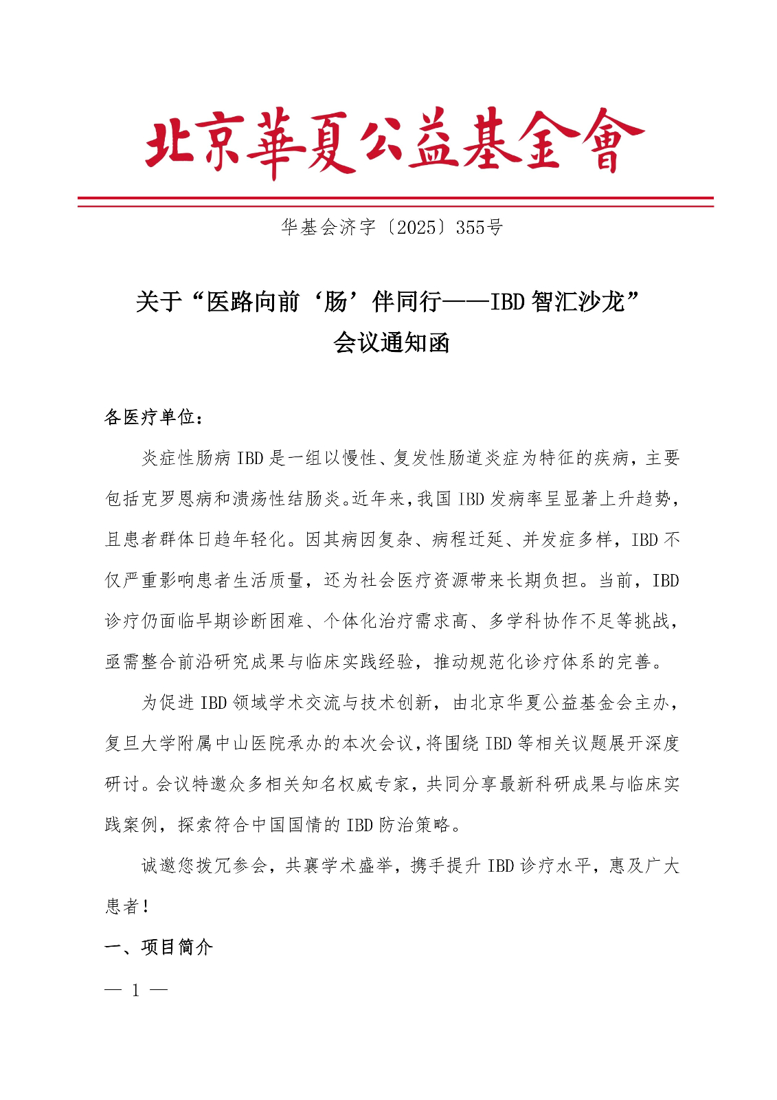 关于“医路向前 ‘肠’伴同行——IBD智汇沙龙”会议通知函