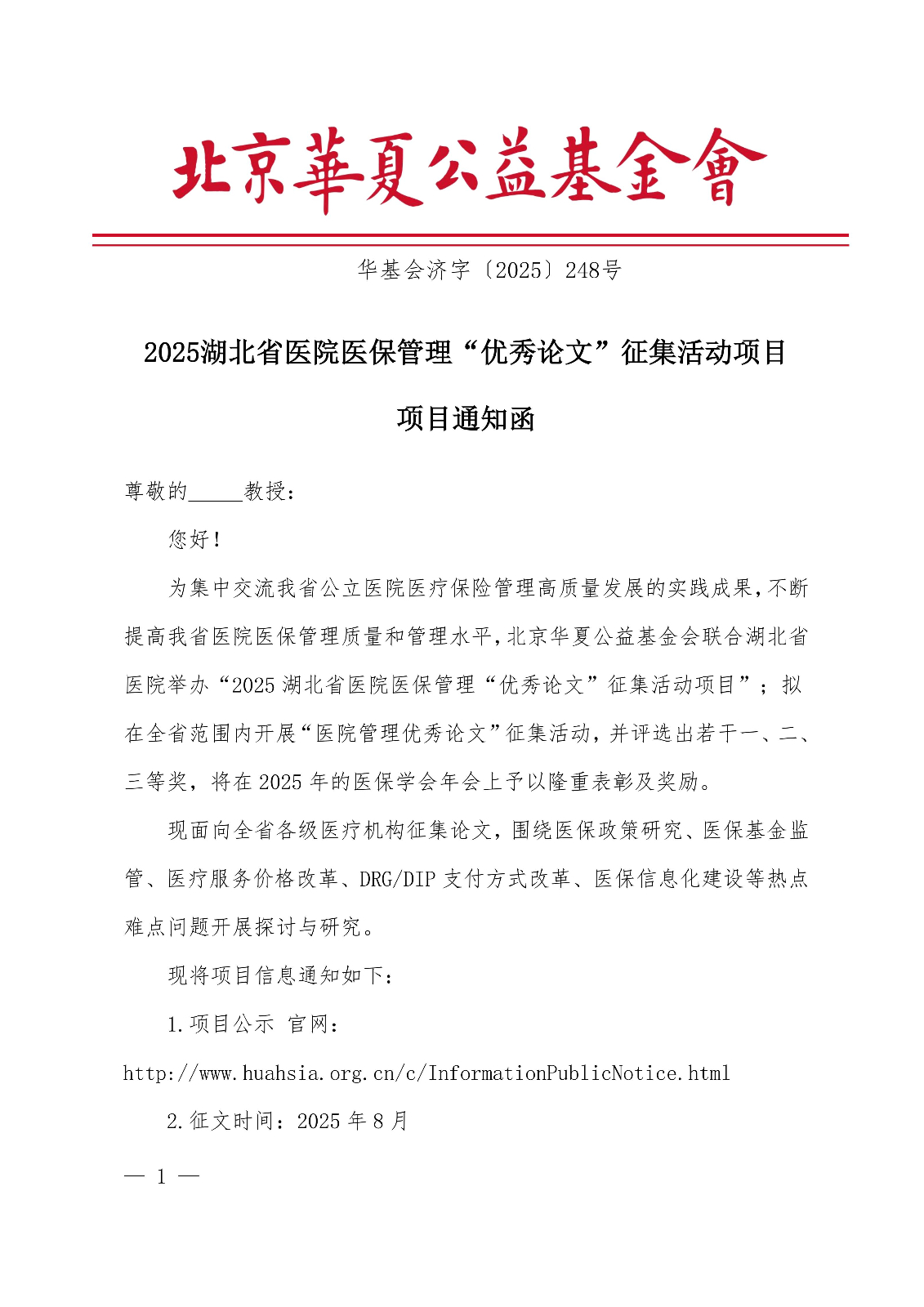 2025湖北省医院医保管理“优秀论文”征集活动项目-项目通知函