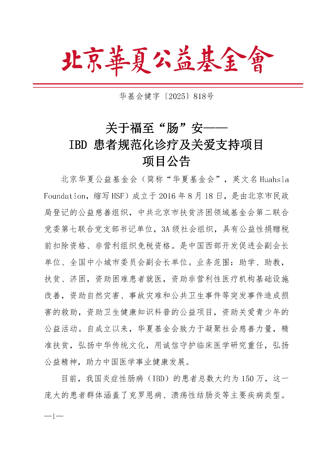 关于福至“肠”安—— IBD 患者规范化诊疗及关爱支持项目-项目公告