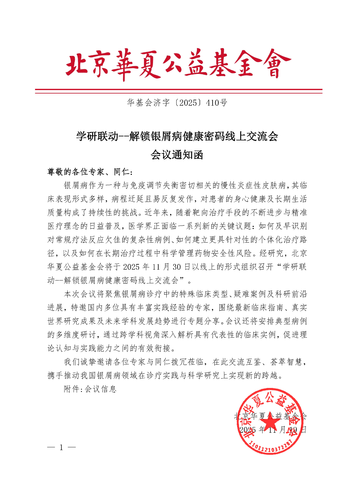 学研联动--解锁银屑病健康密码线上交流会-会议通知函