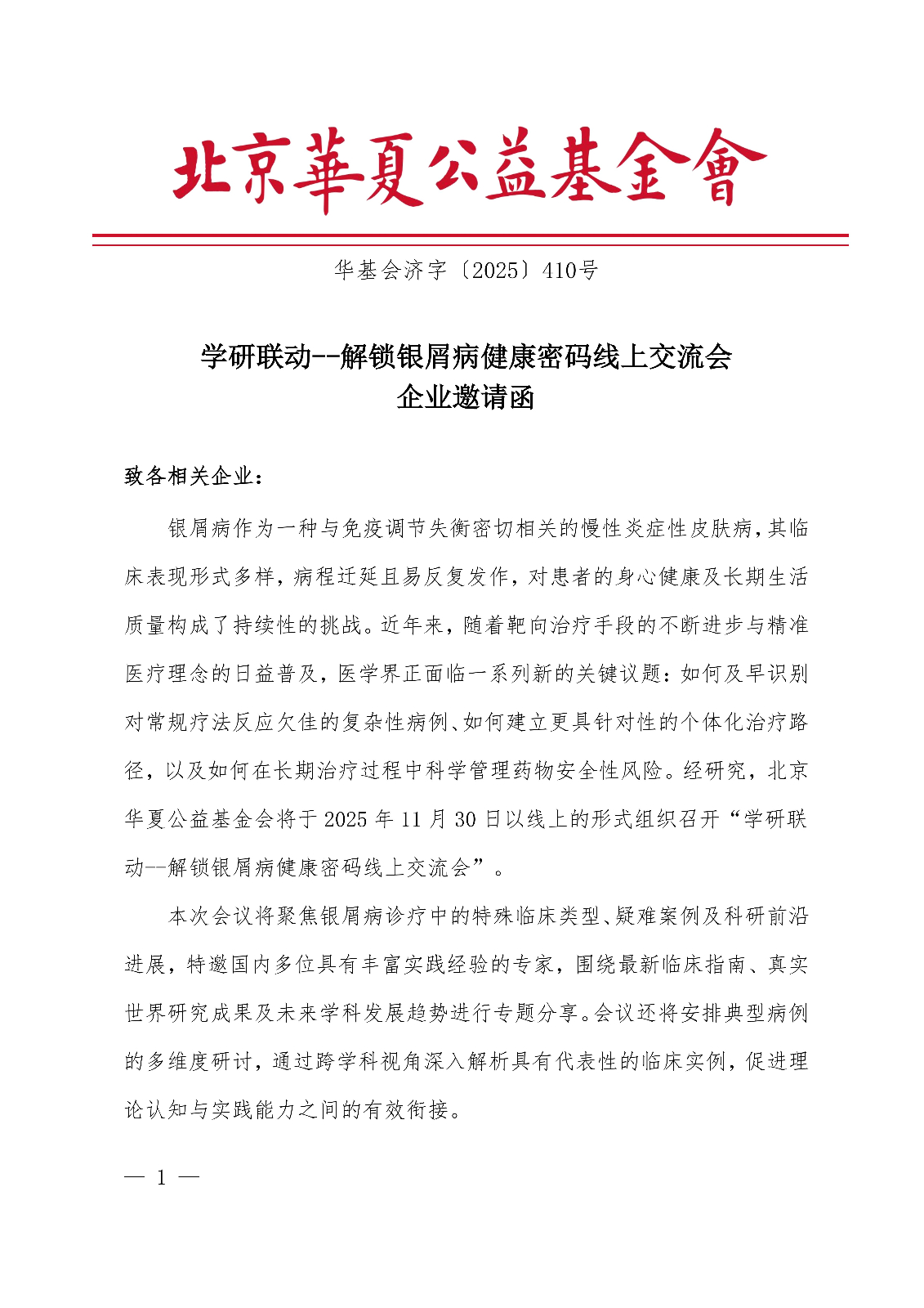 学研联动--解锁银屑病健康密码线上交流会-企业邀请函
