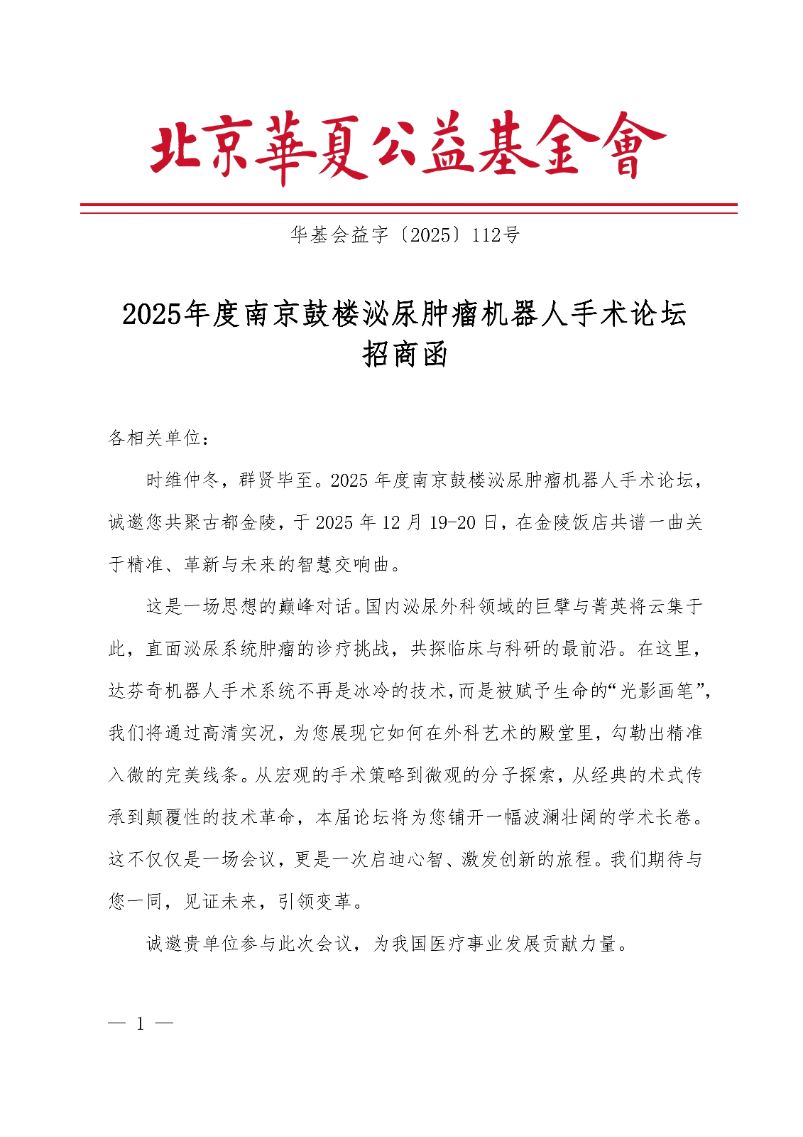 2025年度南京鼓楼泌尿肿瘤机器人手术论坛-招商函