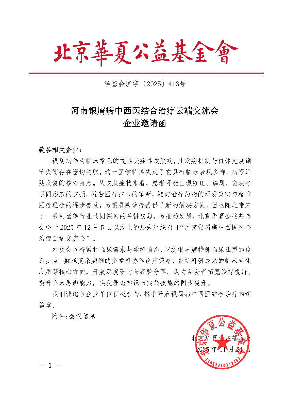 河南银屑病中西医结合治疗云端交流会-企业邀请函