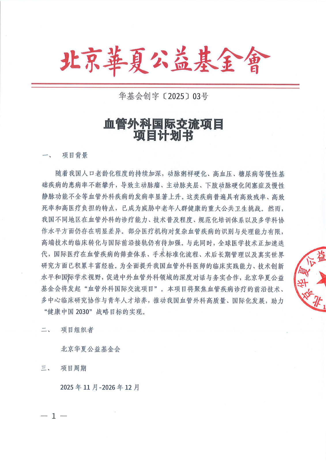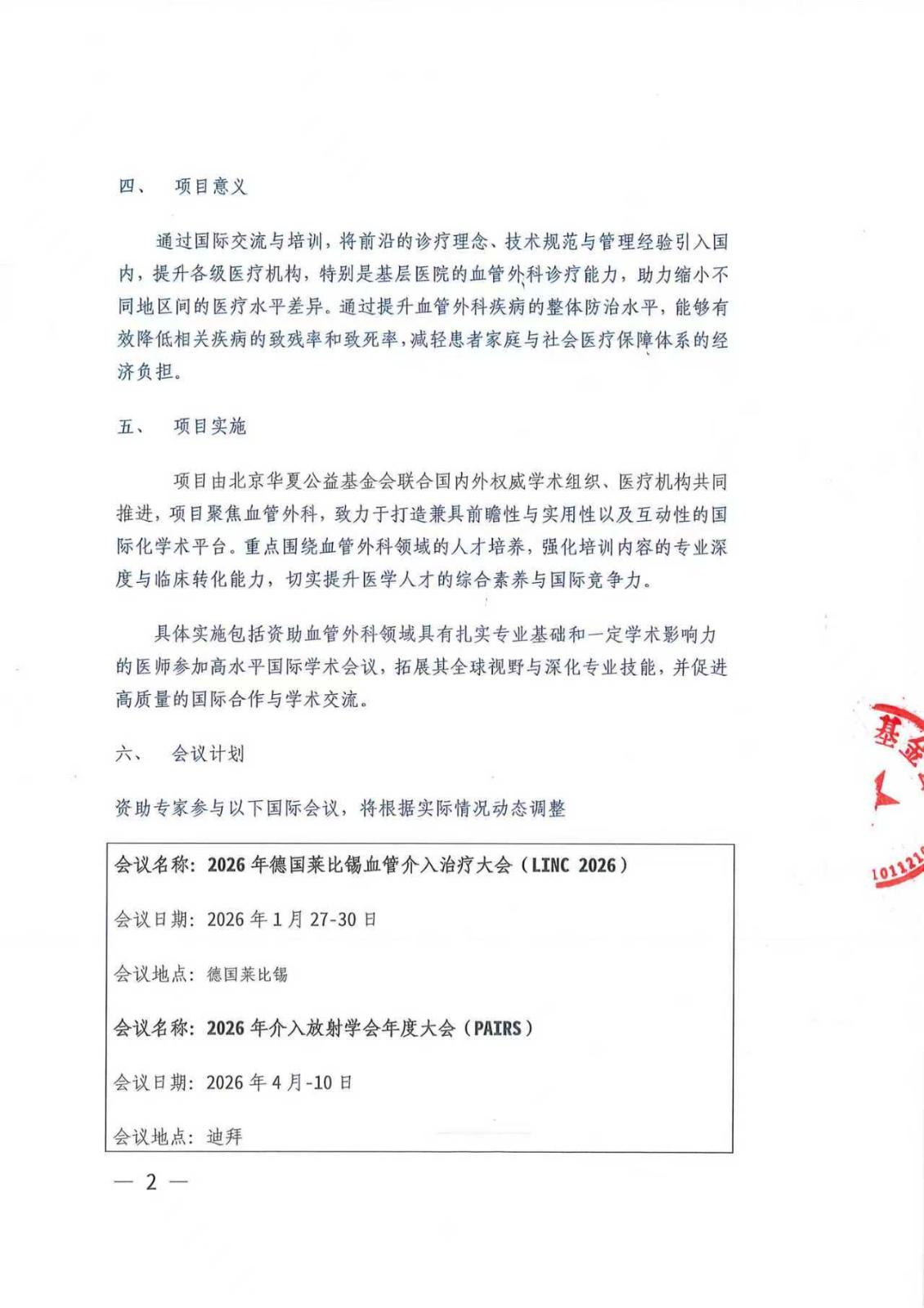 血管外科国际交流项目-项目计划书