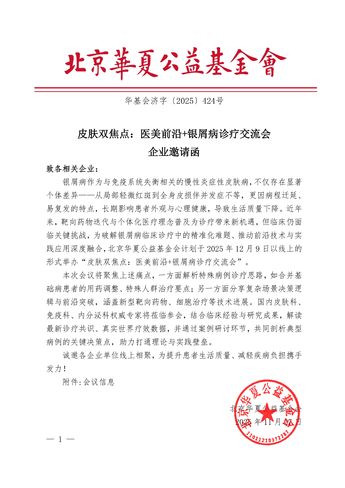 皮肤双焦点:医美前沿+银屑病诊疗交流会-企业邀请函