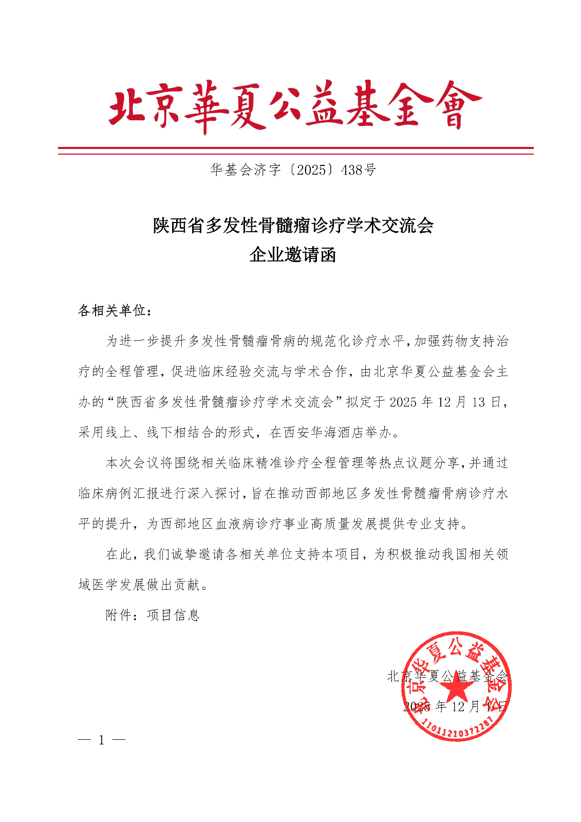 陕西省多发性骨髓瘤诊疗学术交流会-企业邀请函