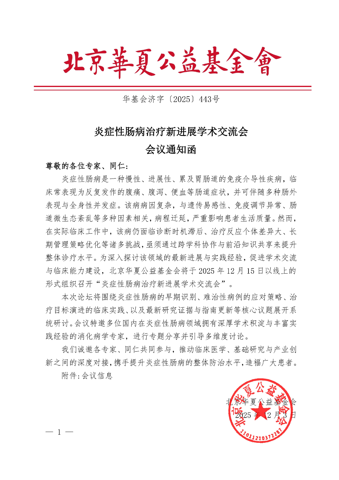 炎症性肠病治疗新进展学术交流会-会议通知函