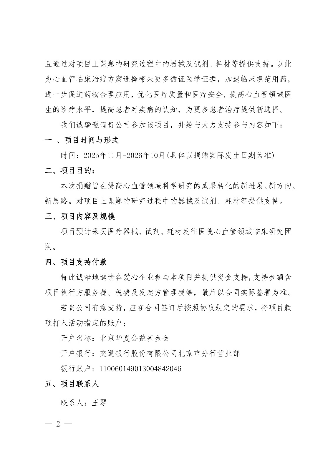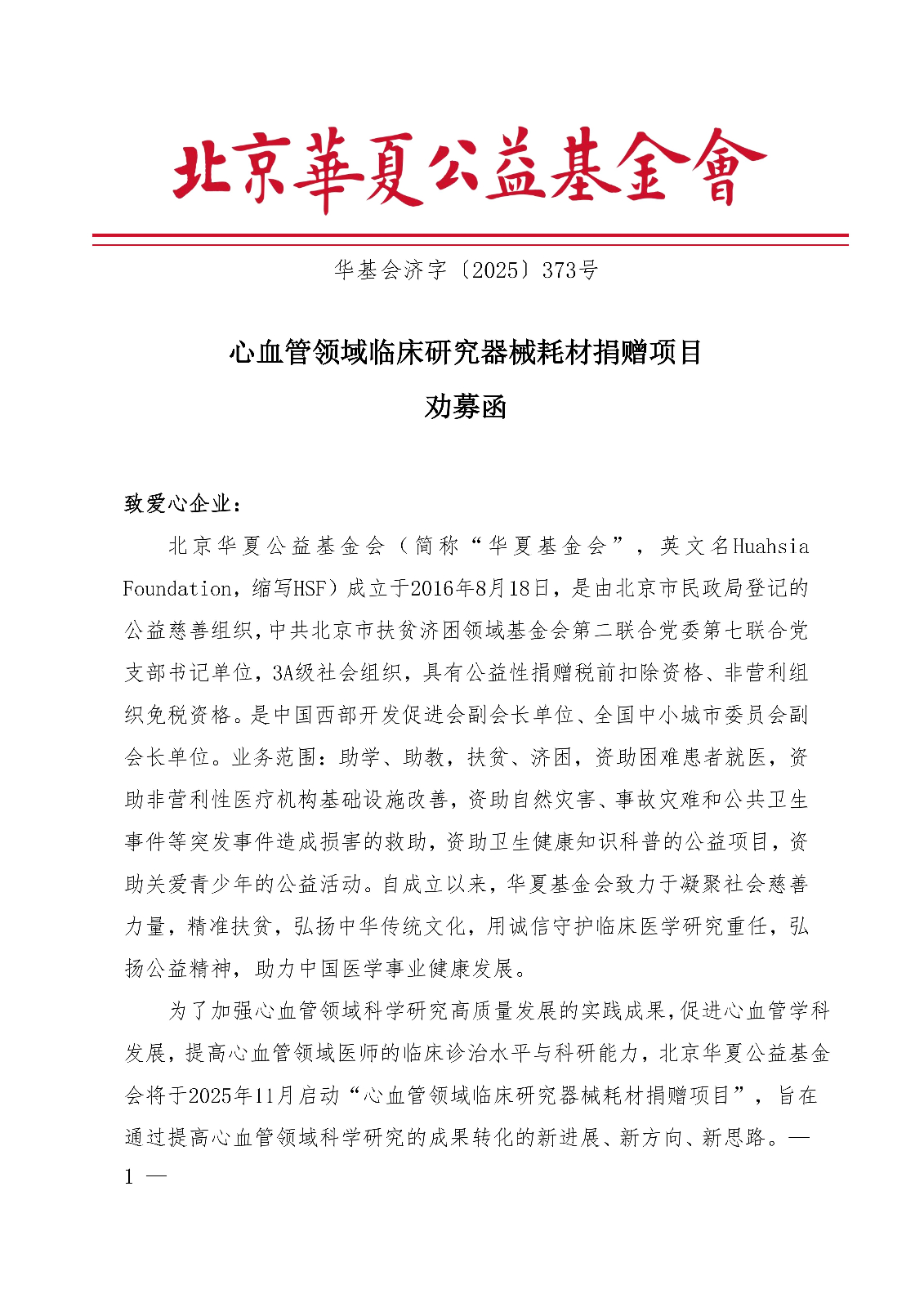 心血管领域临床研究器械耗材捐赠项目-劝募函