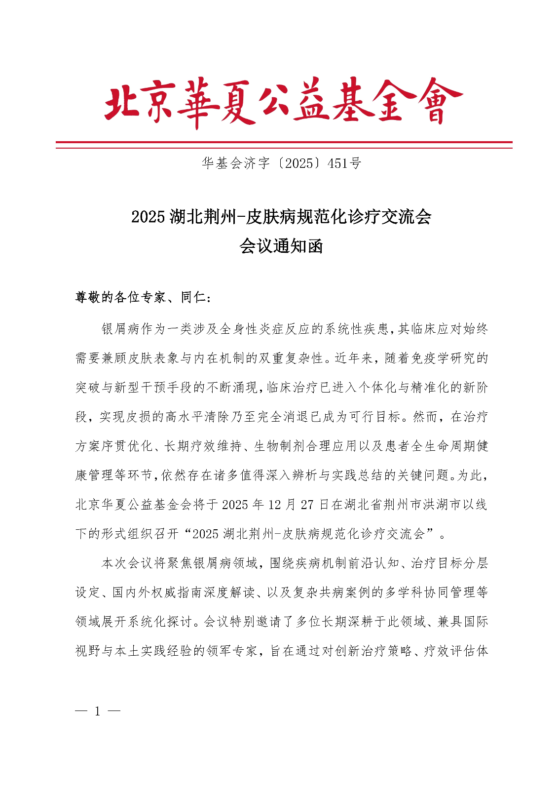 2025湖北荆州-皮肤病规范化诊疗交流会-会议通知函