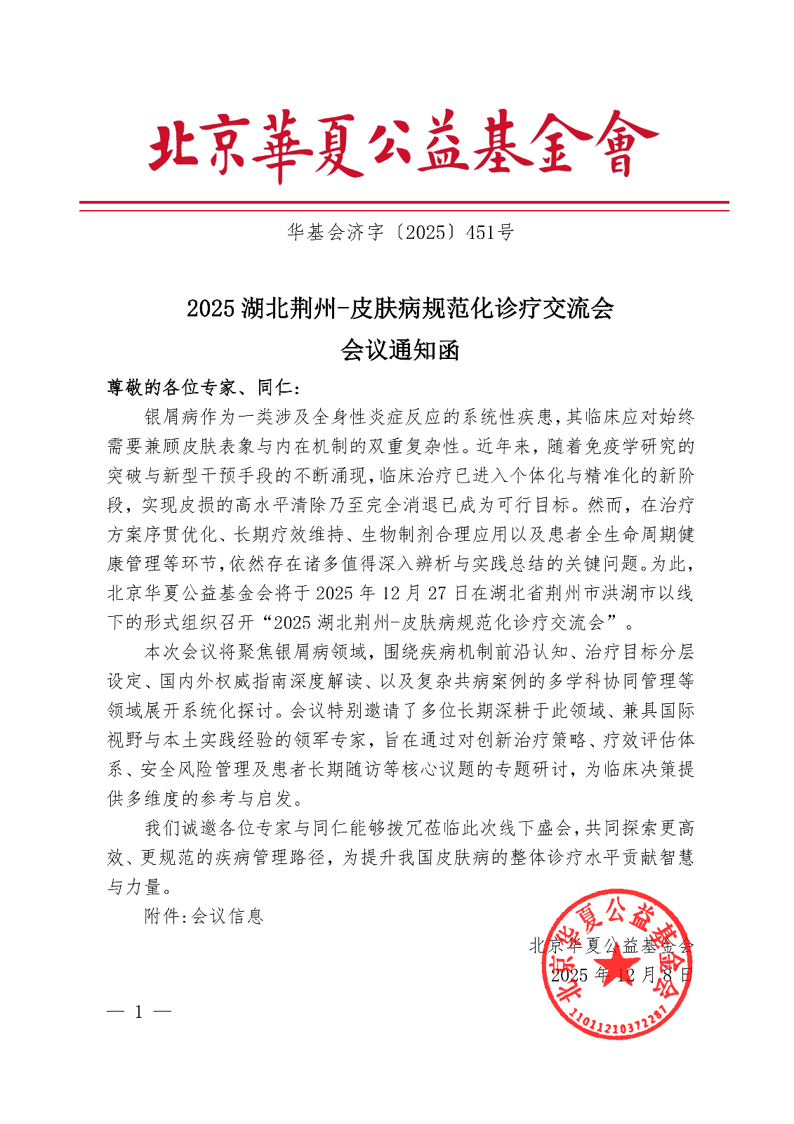 2025湖北荆州-皮肤病规范化诊疗交流会-会议通知函