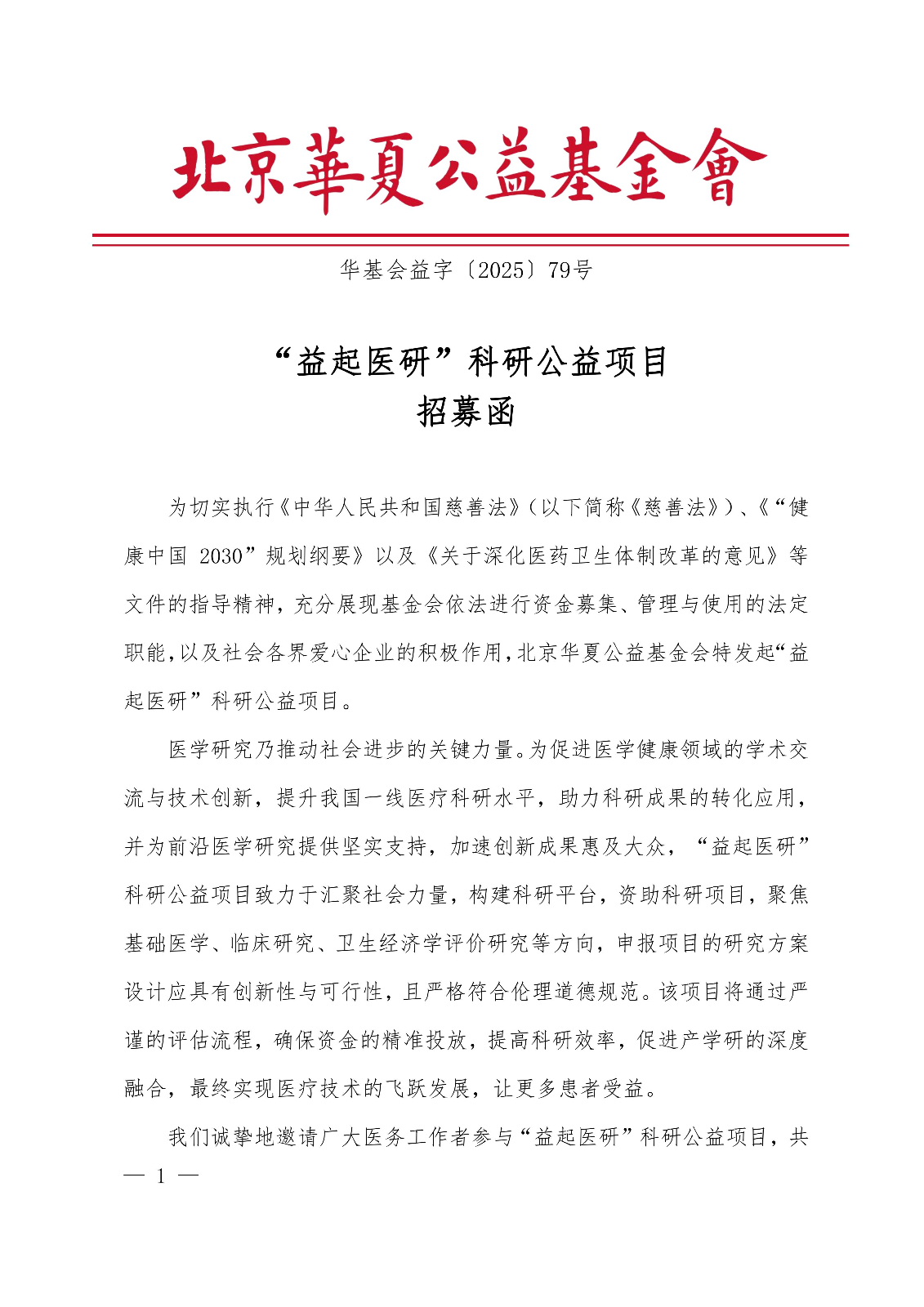 “益起医研”科研公益项目-招募函