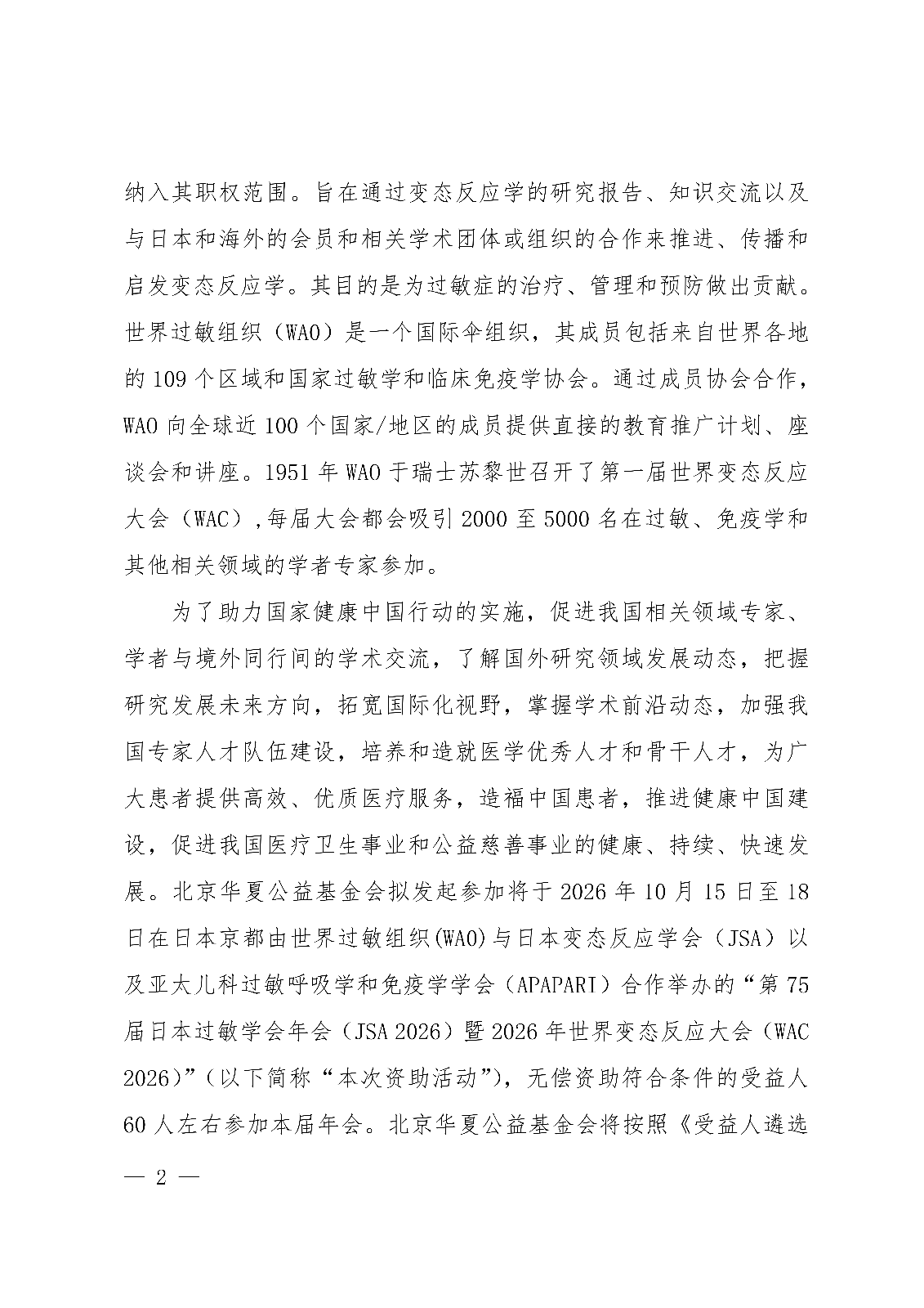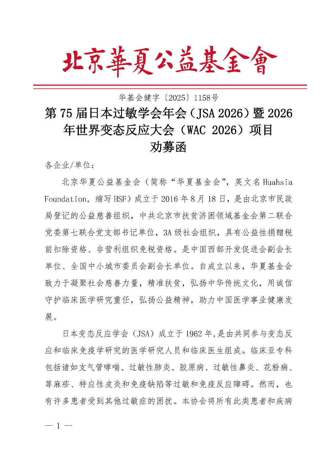 第 75 届日本过敏学会年会(JSA 2026)暨 2026 年世界变态反应大会(WAC 2026)项目 劝募函