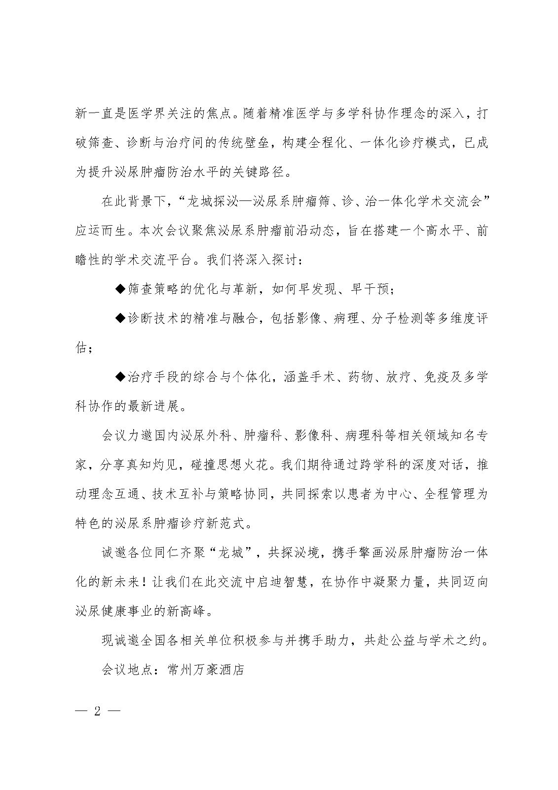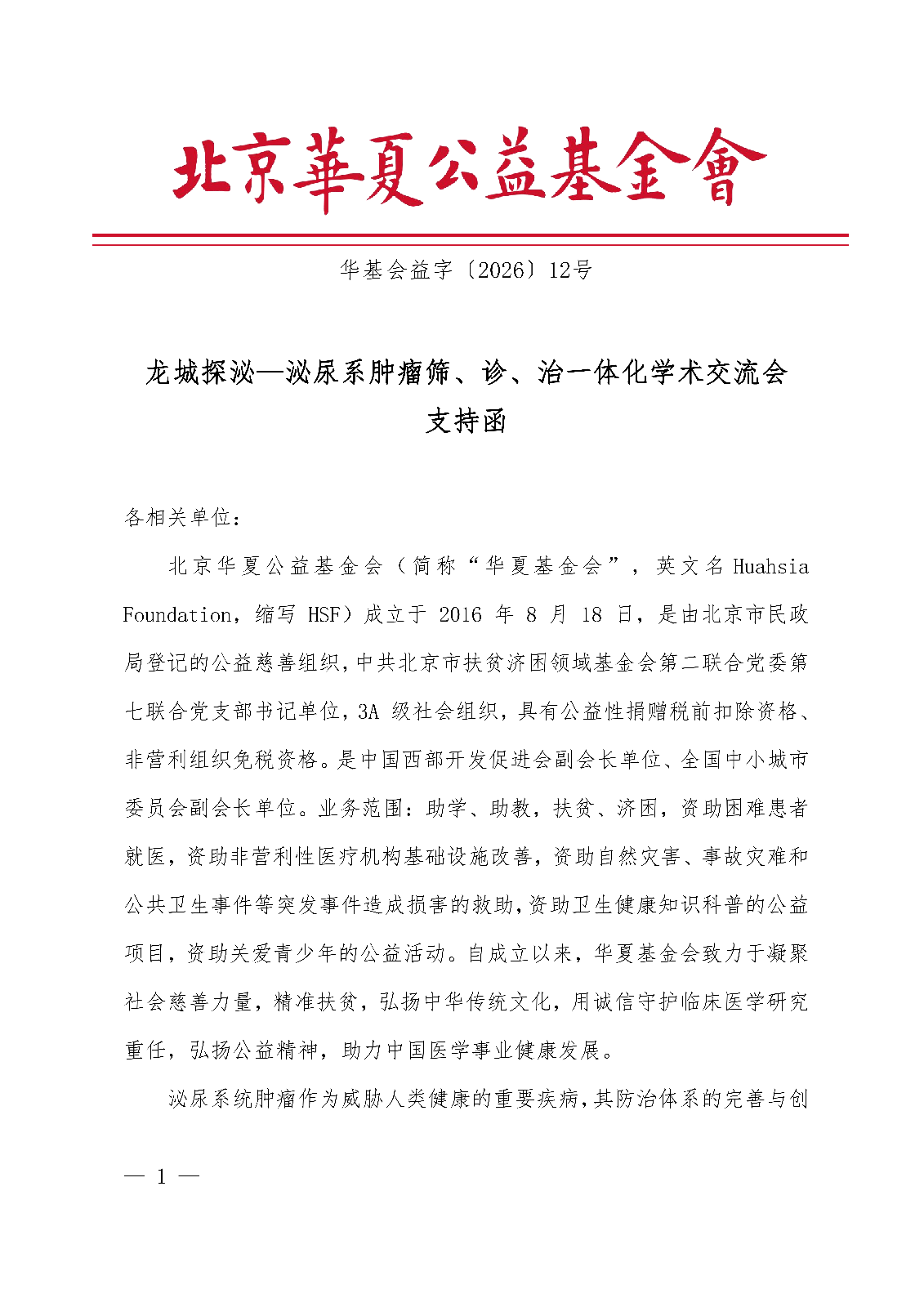 龙城探泌—泌尿系肿瘤筛、诊、治一体化学术交流会-支持函