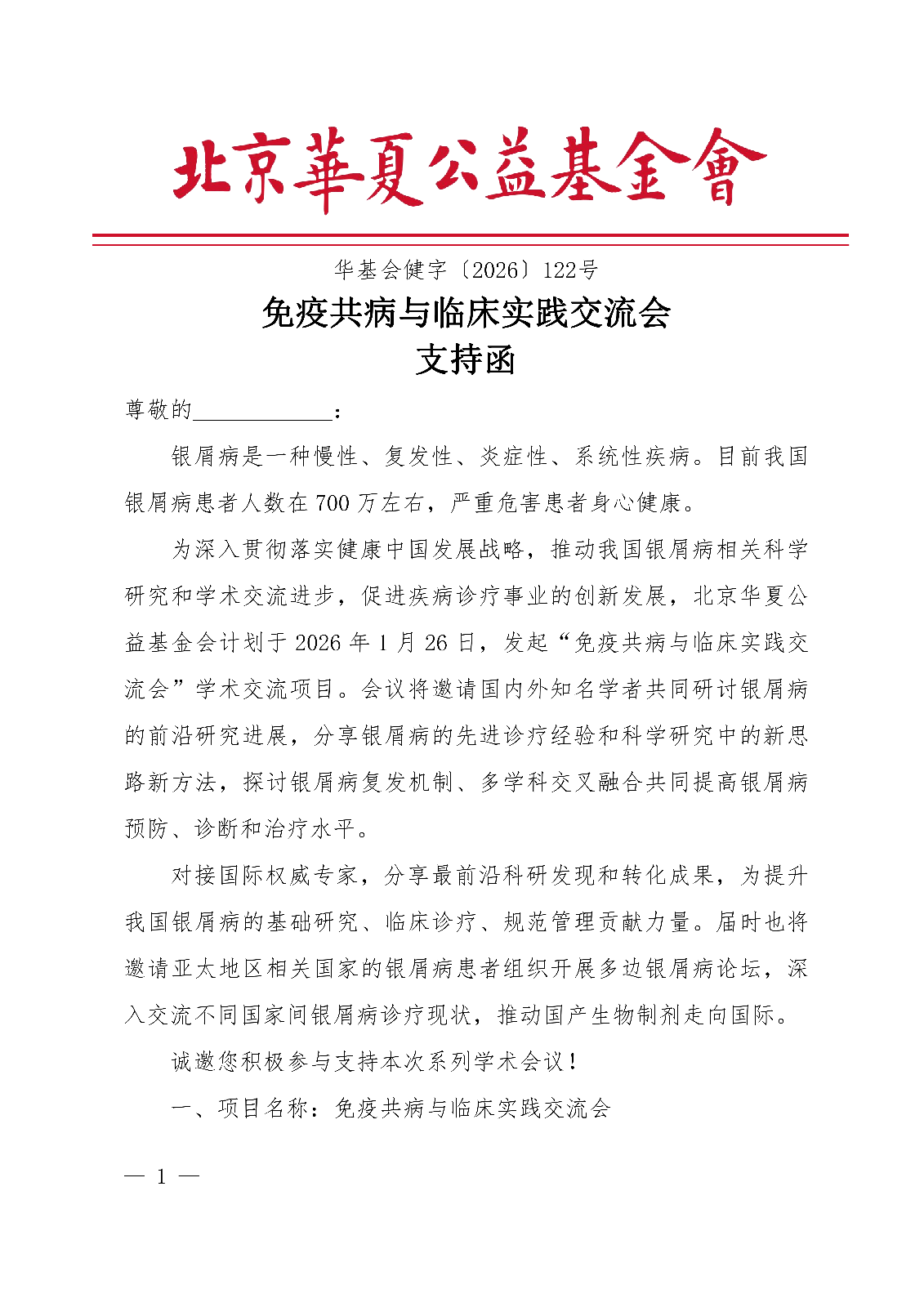 免疫共病与临床实践交流会-支持函