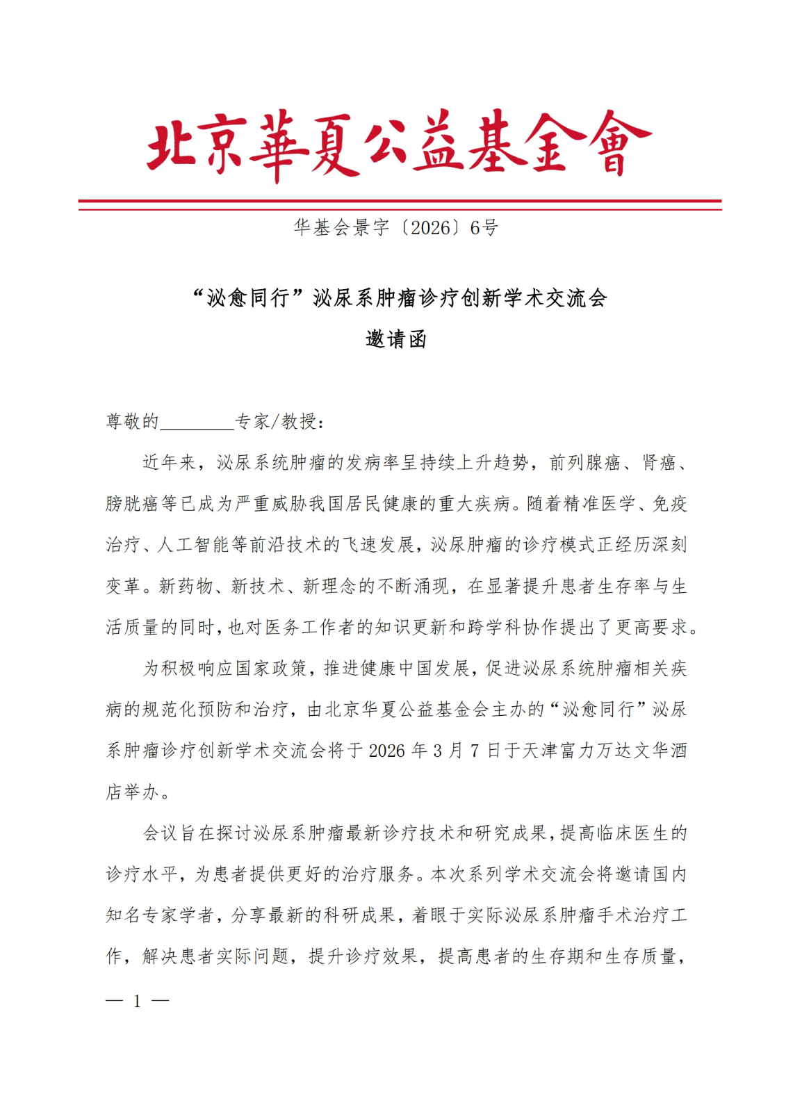 华基会景字【2026】6号 “泌愈同行”泌尿系肿瘤诊疗创新学术交流会-邀请函