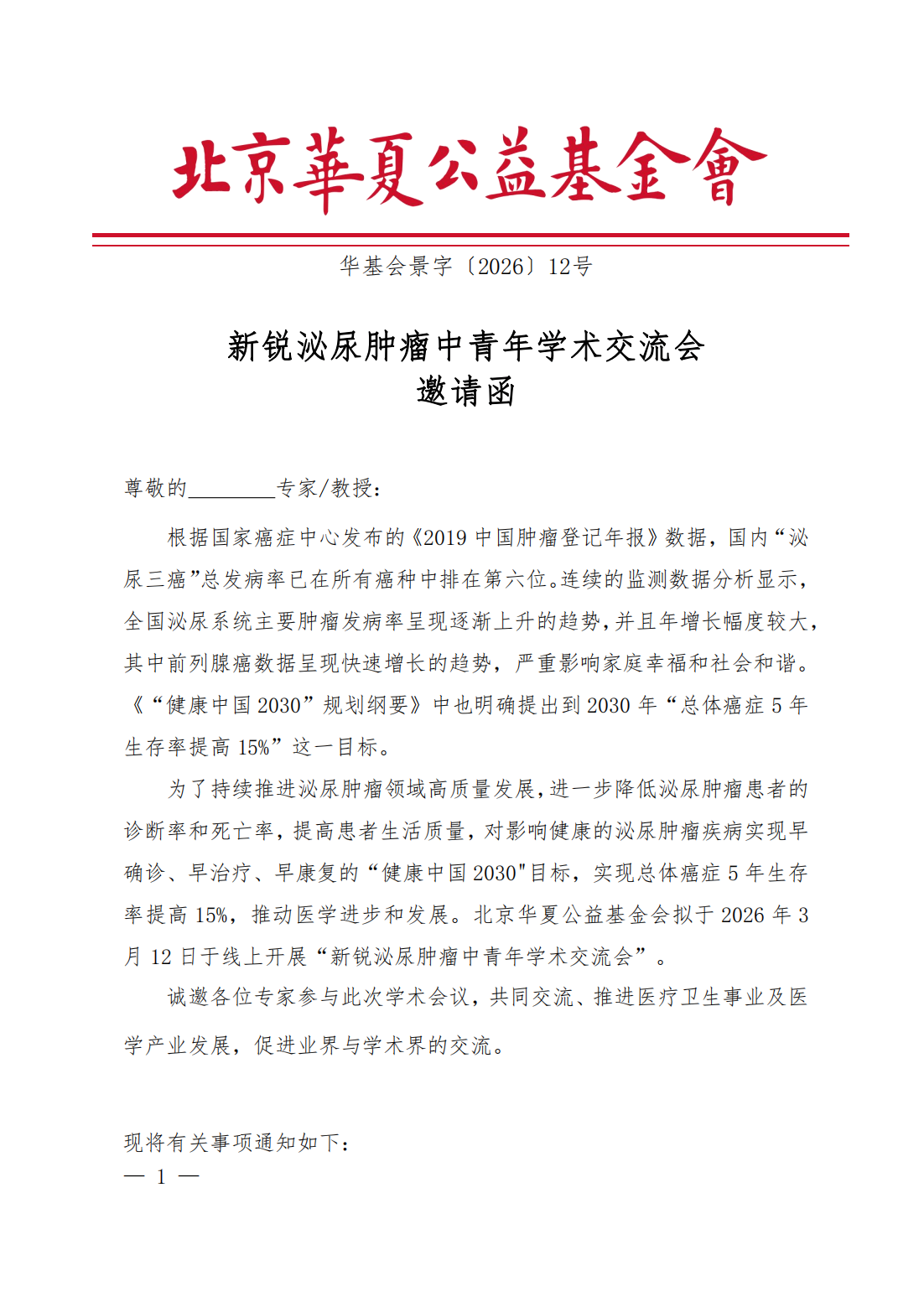 新锐泌尿肿瘤中青年学术交流会-邀请函