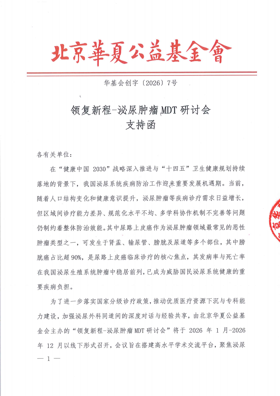 领复新程-泌尿肿瘤MDT研讨会 支持函