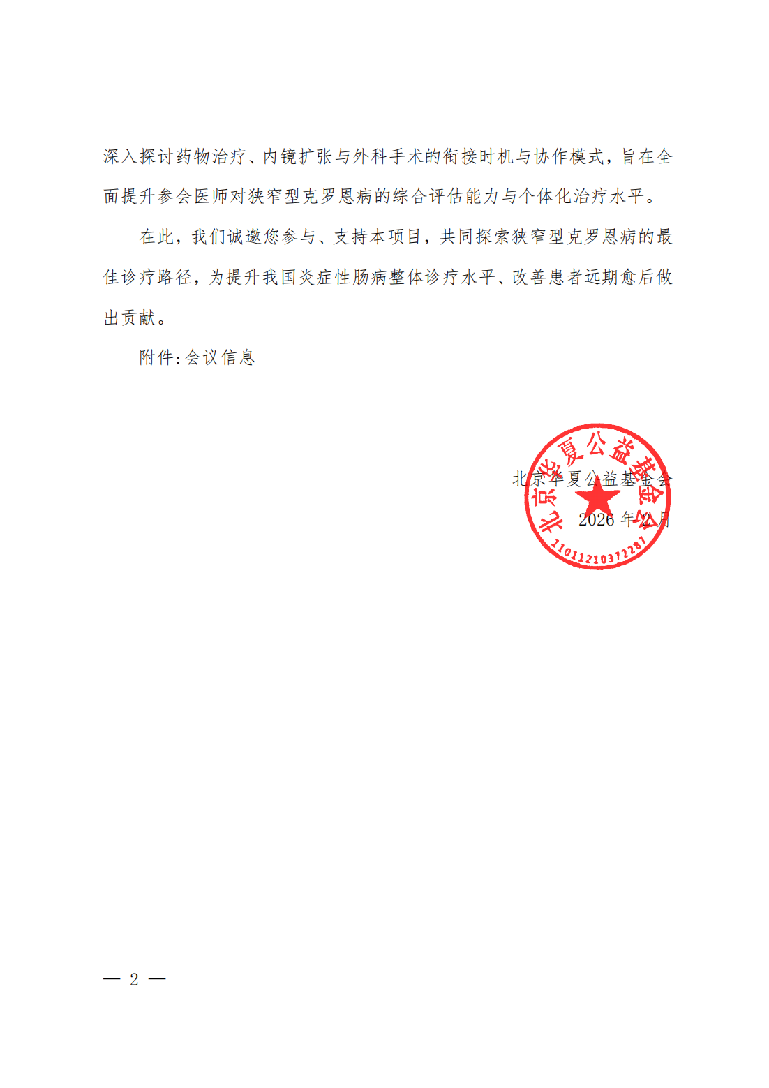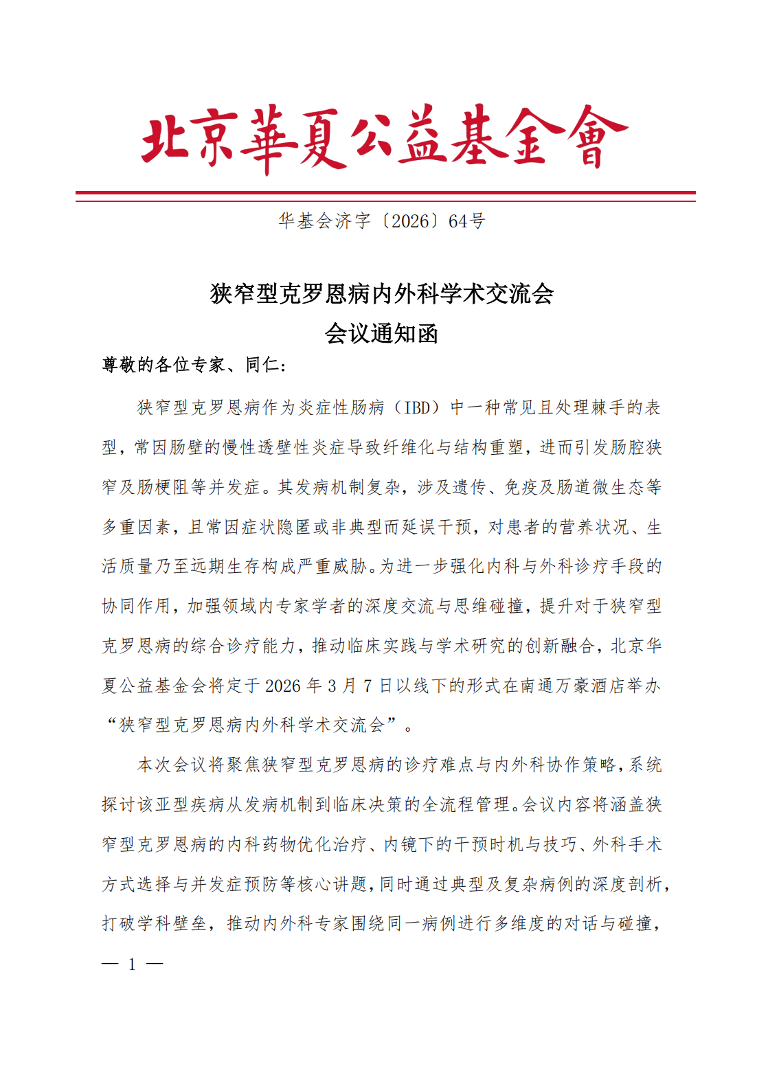 狭窄型克罗恩病内外科学术交流会-会议通知函