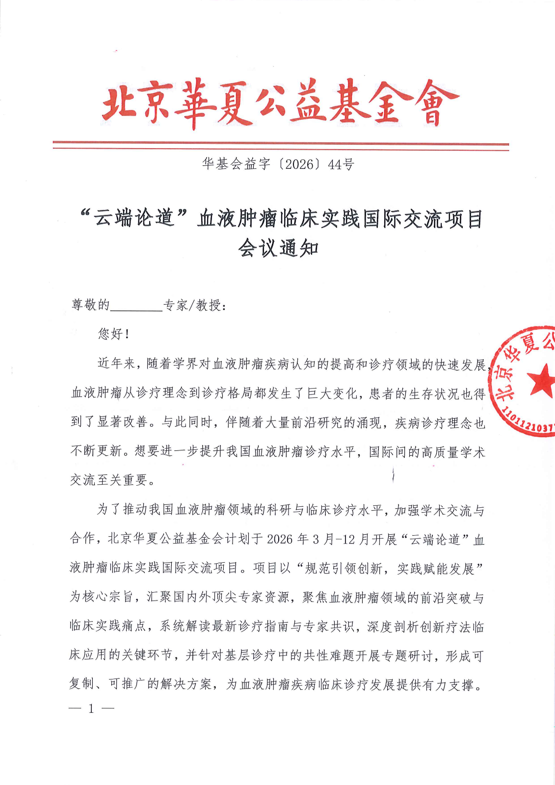 “云端论道”血液肿瘤临床实践国际交流项目-会议通知