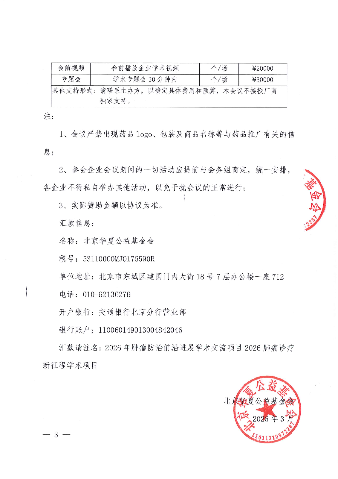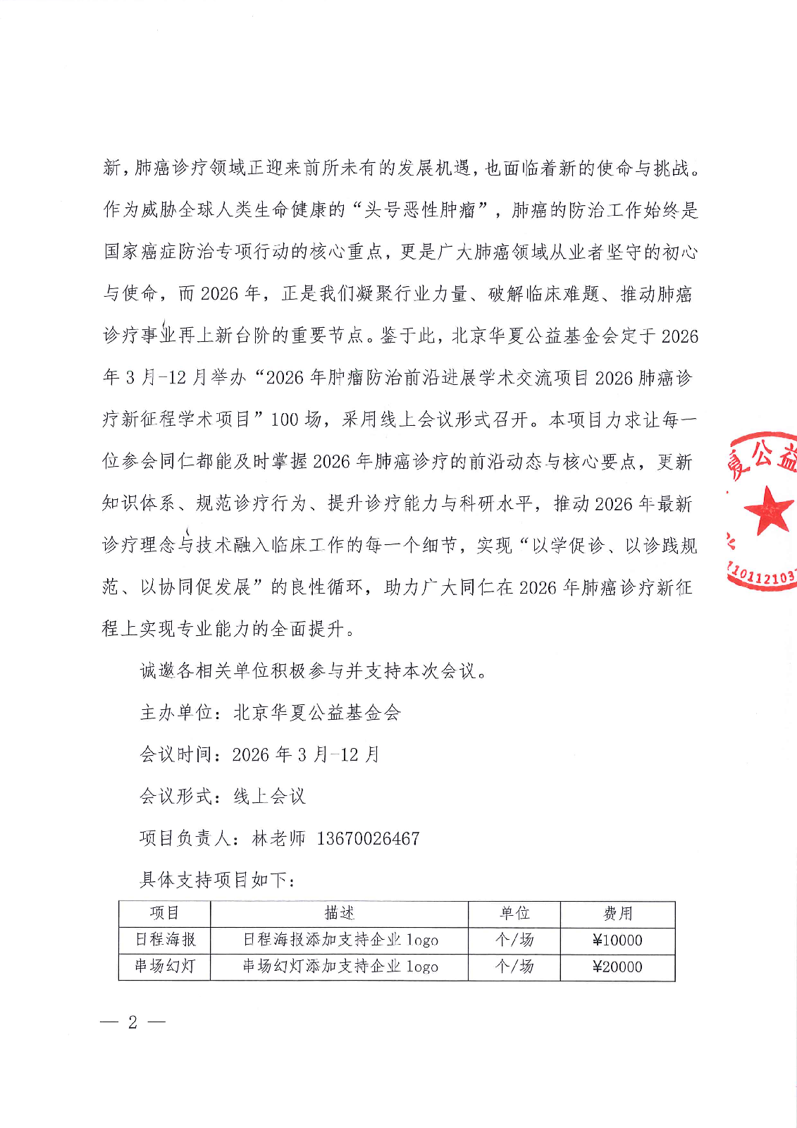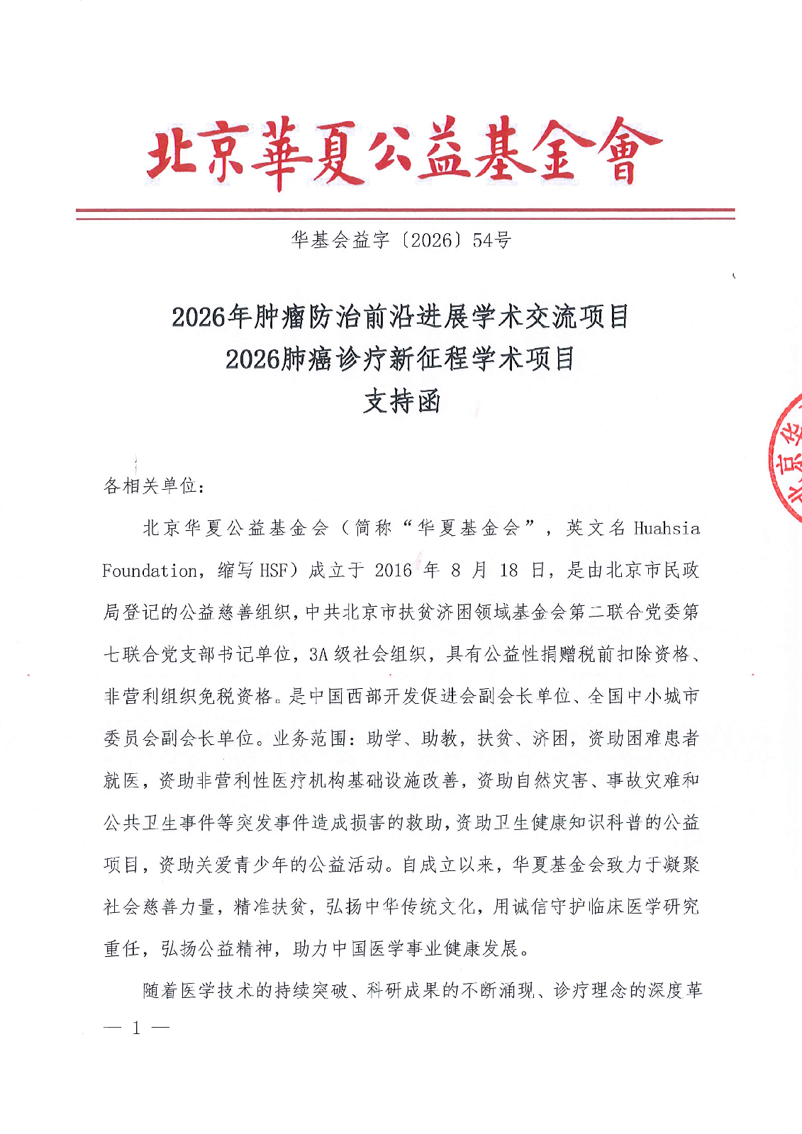 2026年肿瘤防治前沿进展学术交流项目2026肺癌诊疗新征程学术项目-支持函