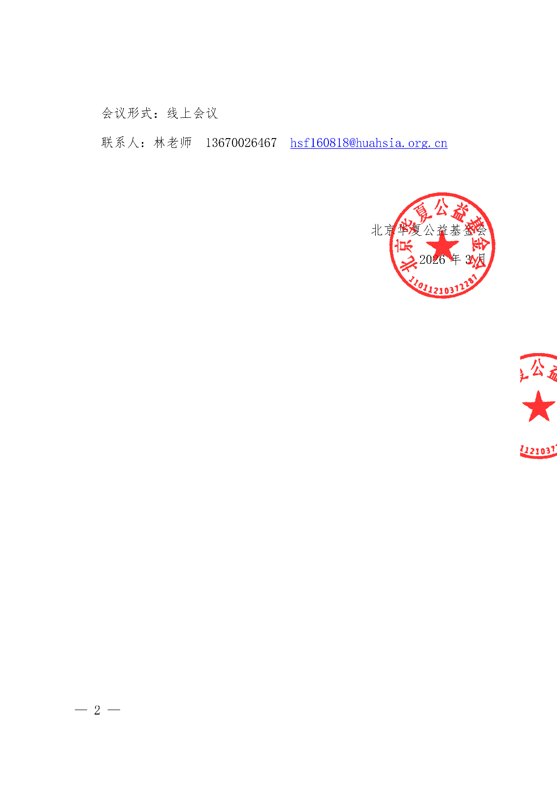 北京华夏公益基金会(简称“华夏基金会”,英文名Huahsia Foundation,缩写HSF)成立于2016年8月18日,以开展慈善活动为宗旨,不以盈利为目的;弘扬中华优秀传统文化,促进国际人文交流合作。是中关村智慧医工交叉协会会长单位、中国西部开发促进会副会长单位、全国中小城市委员会副会长单位。