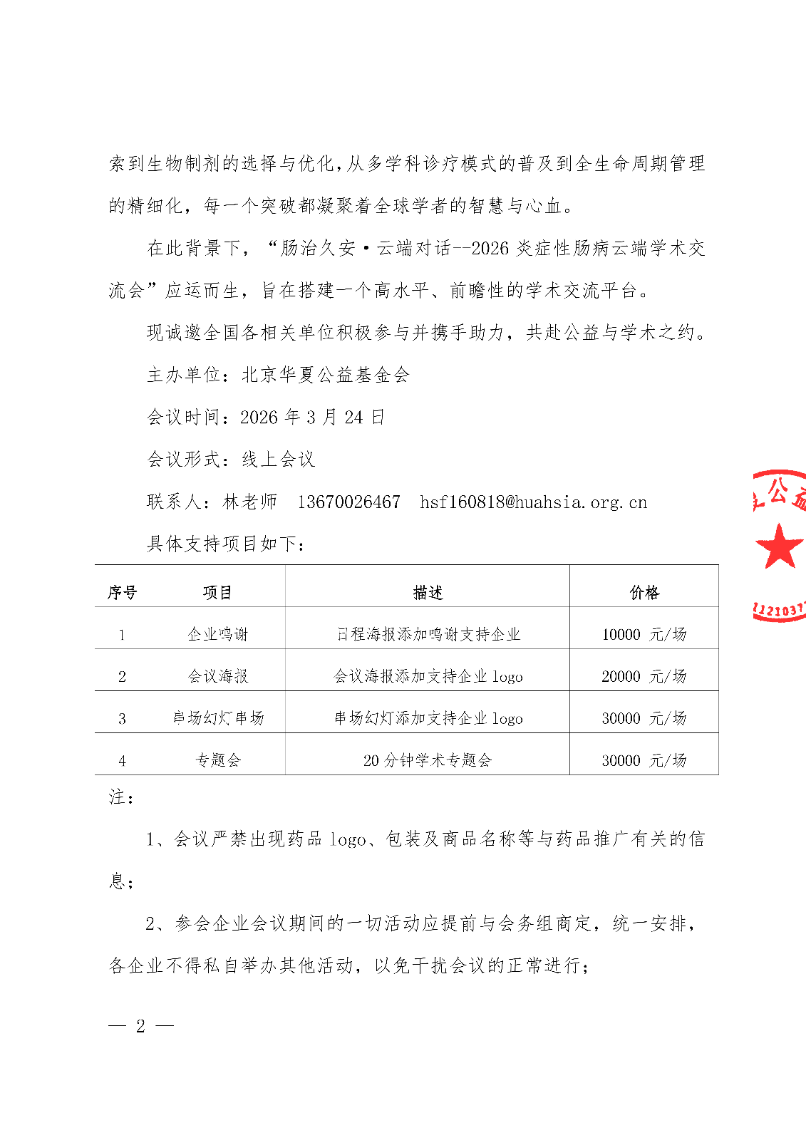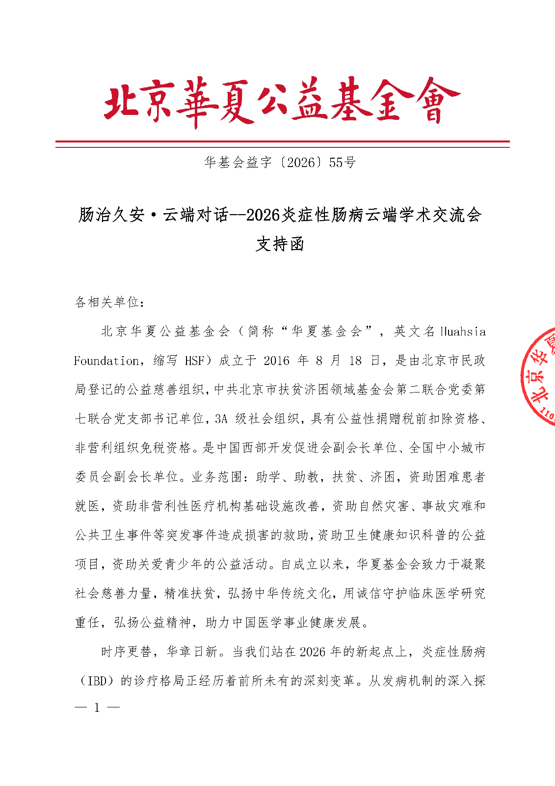 肠治久安·云端对话--2026炎症性肠病云端学术交流会-支持函