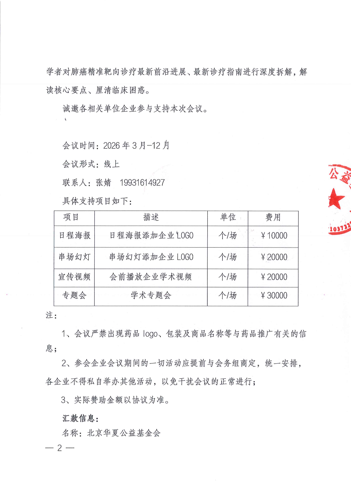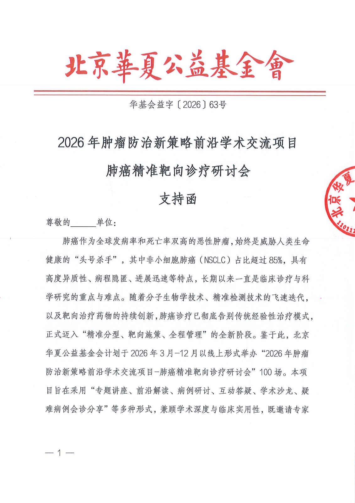 2026年肿瘤防治新策略前沿学术交流项目肺癌精准靶向诊疗研讨会-支持函