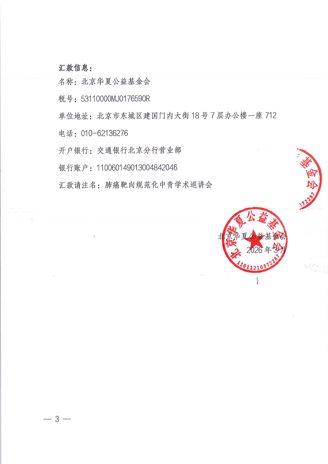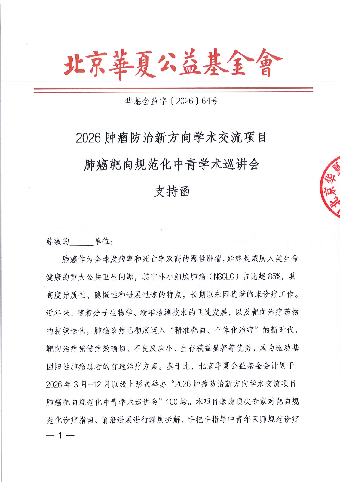 2026肿瘤防治新方向学术交流项目肺癌靶向规范化中青学术巡讲会-支持函