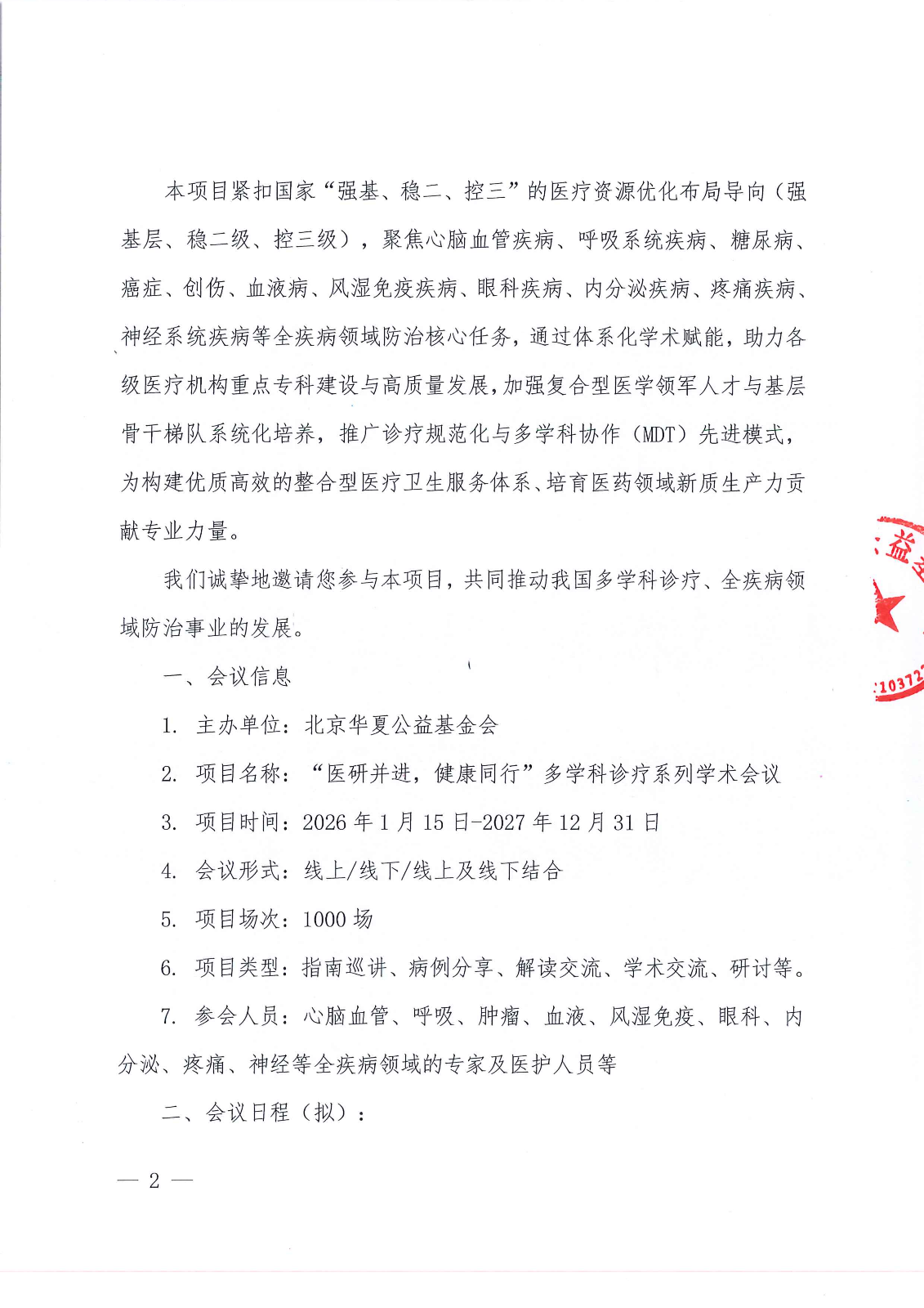 “医研并进,健康同行”多学科诊疗系列学术会议邀请函