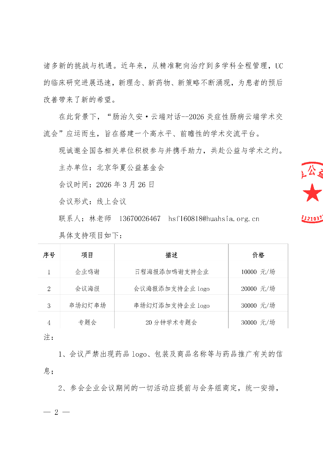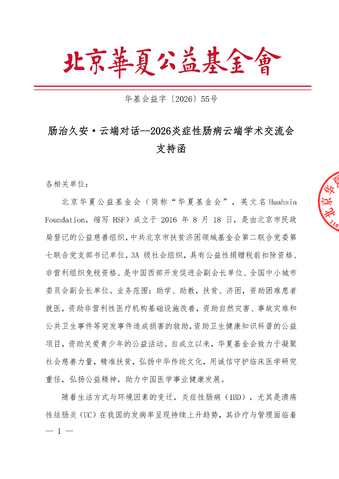 肠治久安·云端对话--2026炎症性肠病云端学术交流会-支持函