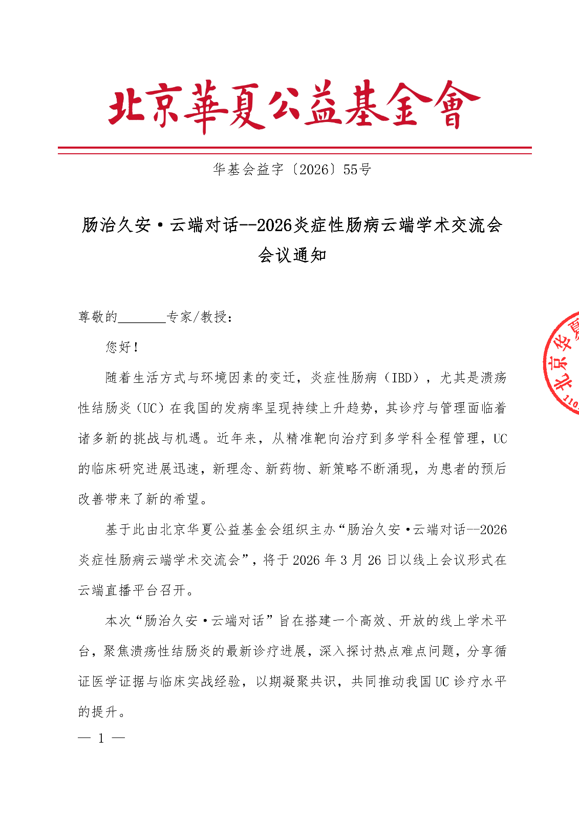 肠治久安·云端对话--2026炎症性肠病云端学术交流会-会议通知