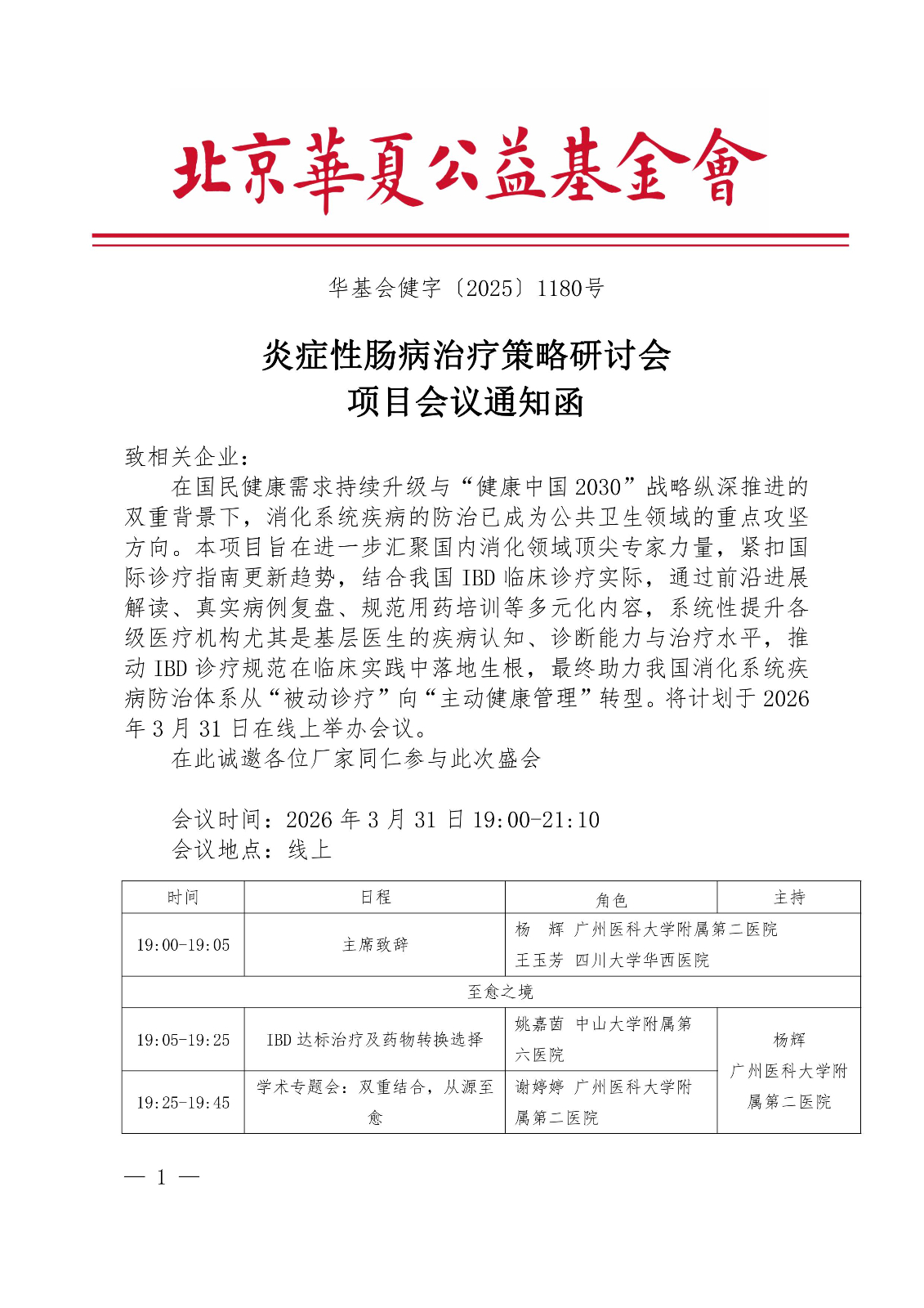 炎症性肠病治疗策略研讨会-项目会议通知函