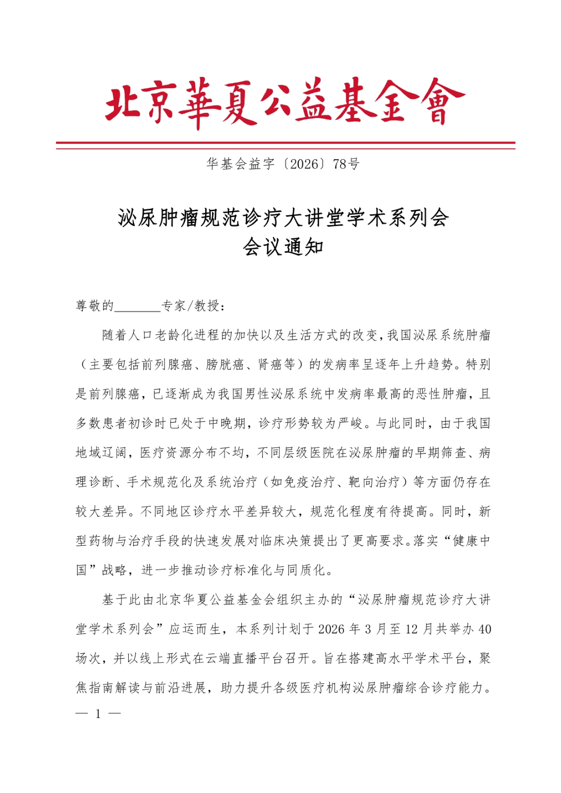 泌尿肿瘤规范诊疗大讲堂学术系列会-会议通知