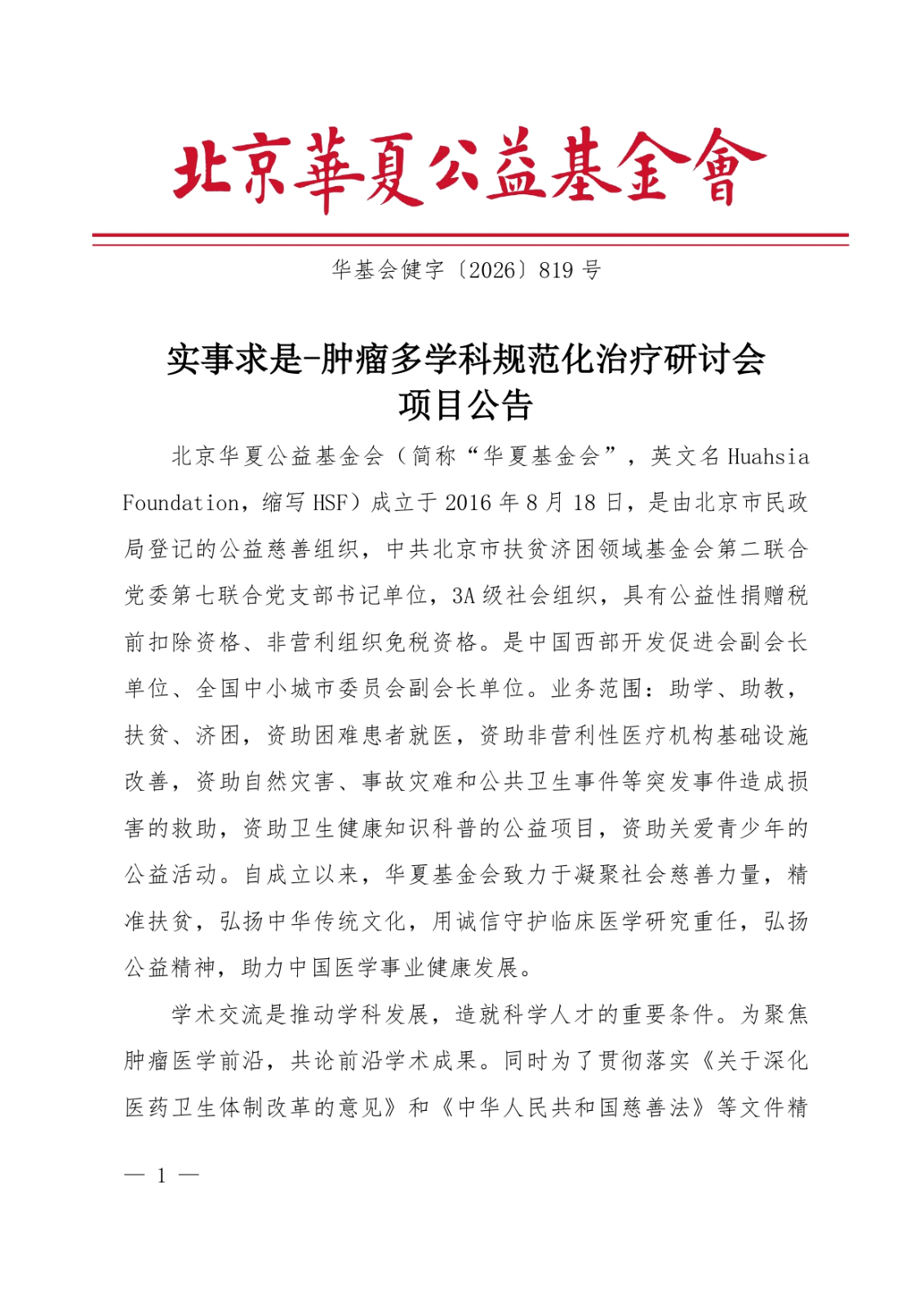 实事求是-肿瘤多学科规范化治疗研讨会项目公告