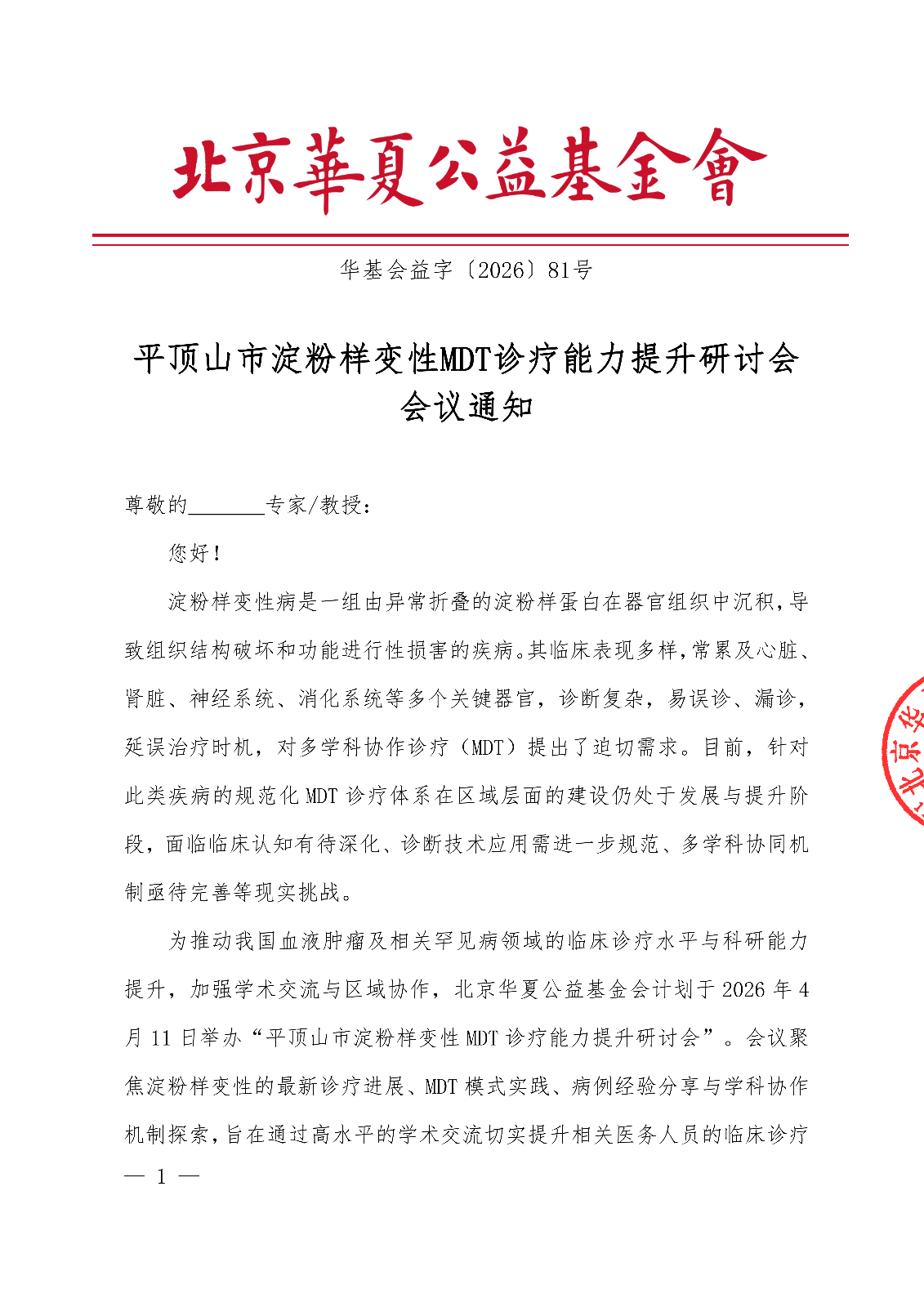 平顶山市淀粉样变性MDT诊疗能力提升研讨会-会议通知