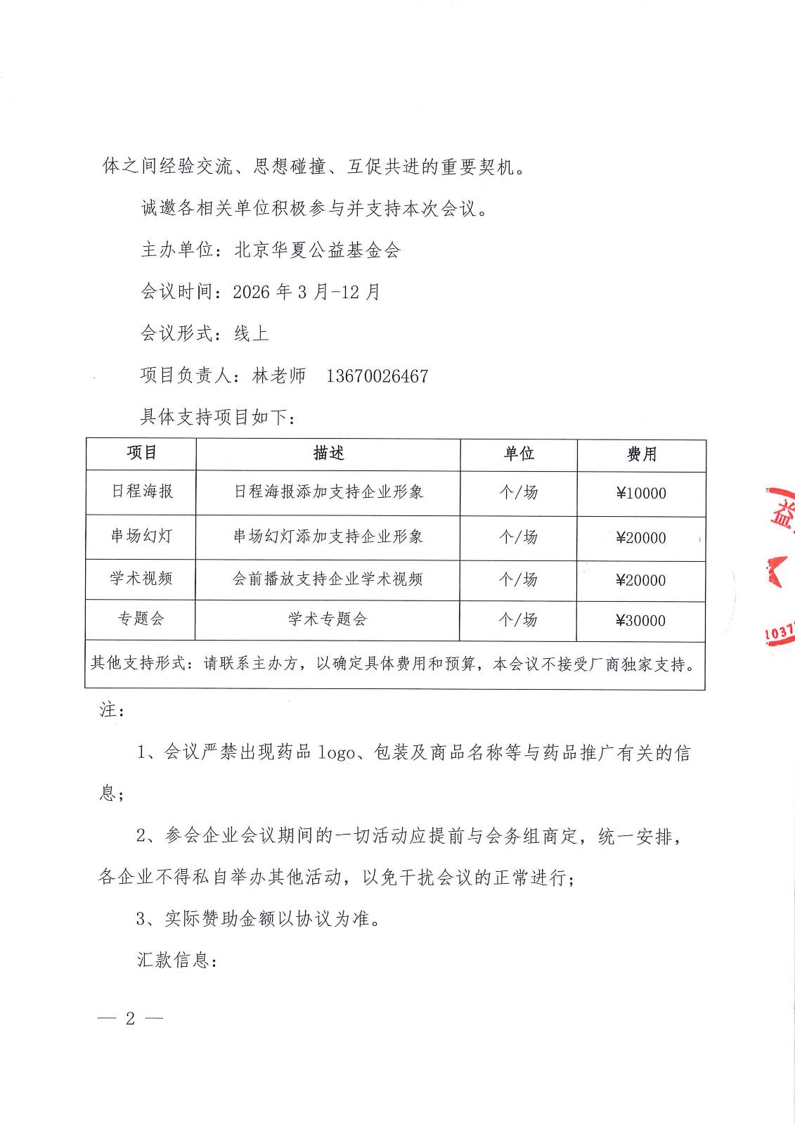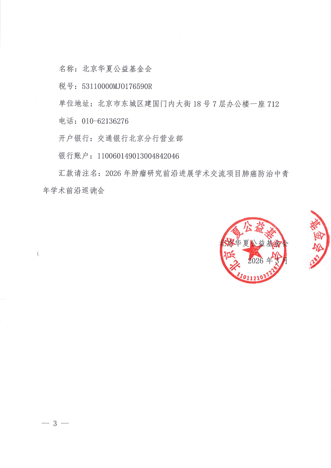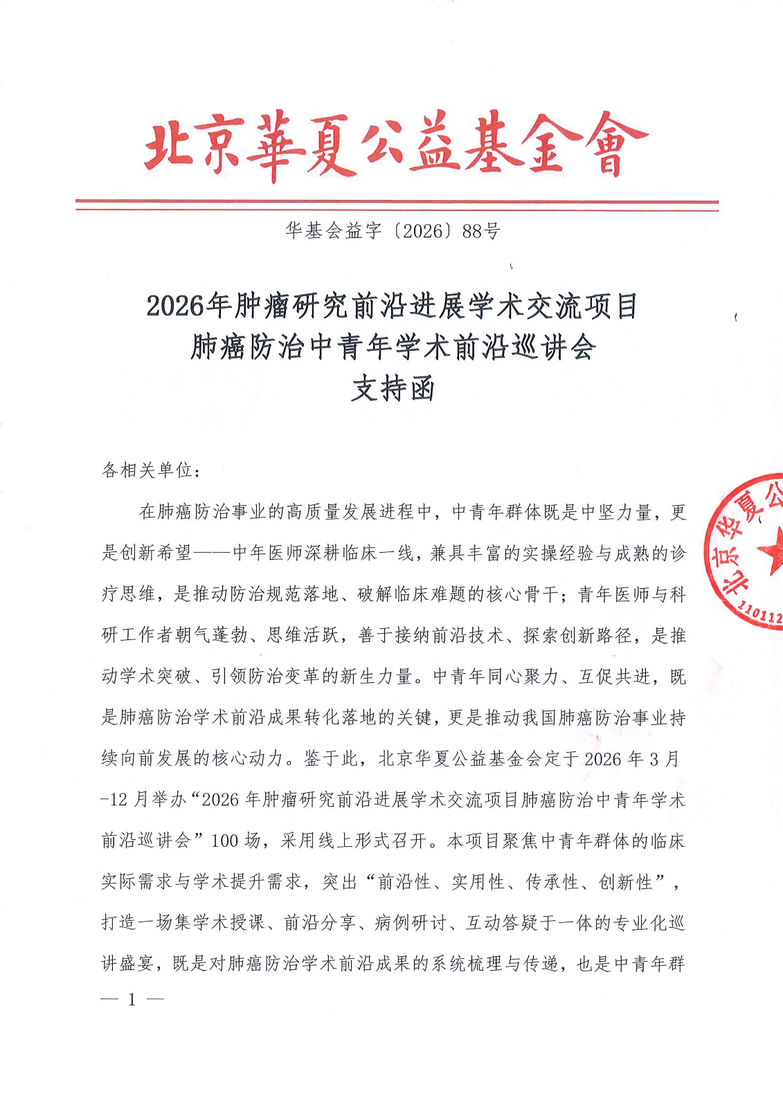 2026年肿瘤研究前沿进展学术交流项目肺癌防治中青年学术前沿巡讲会-支持函