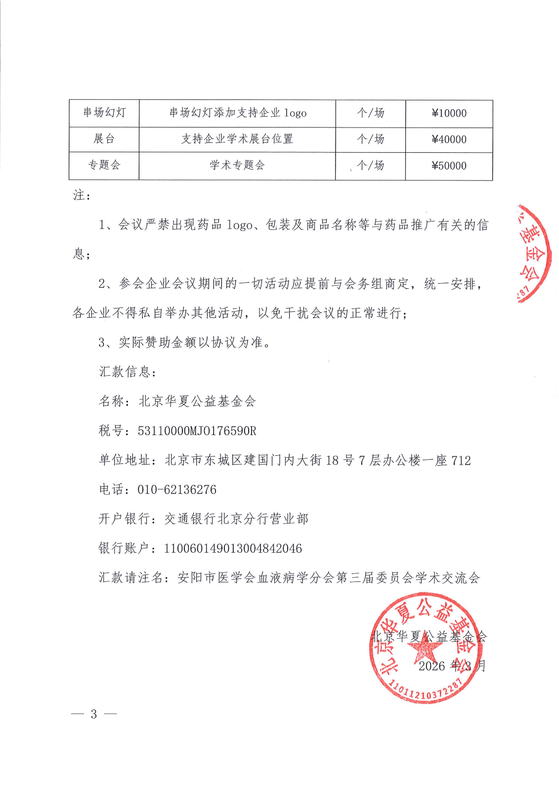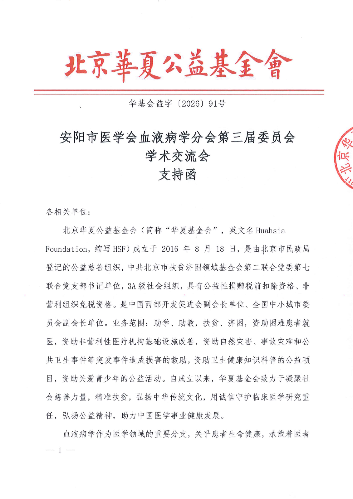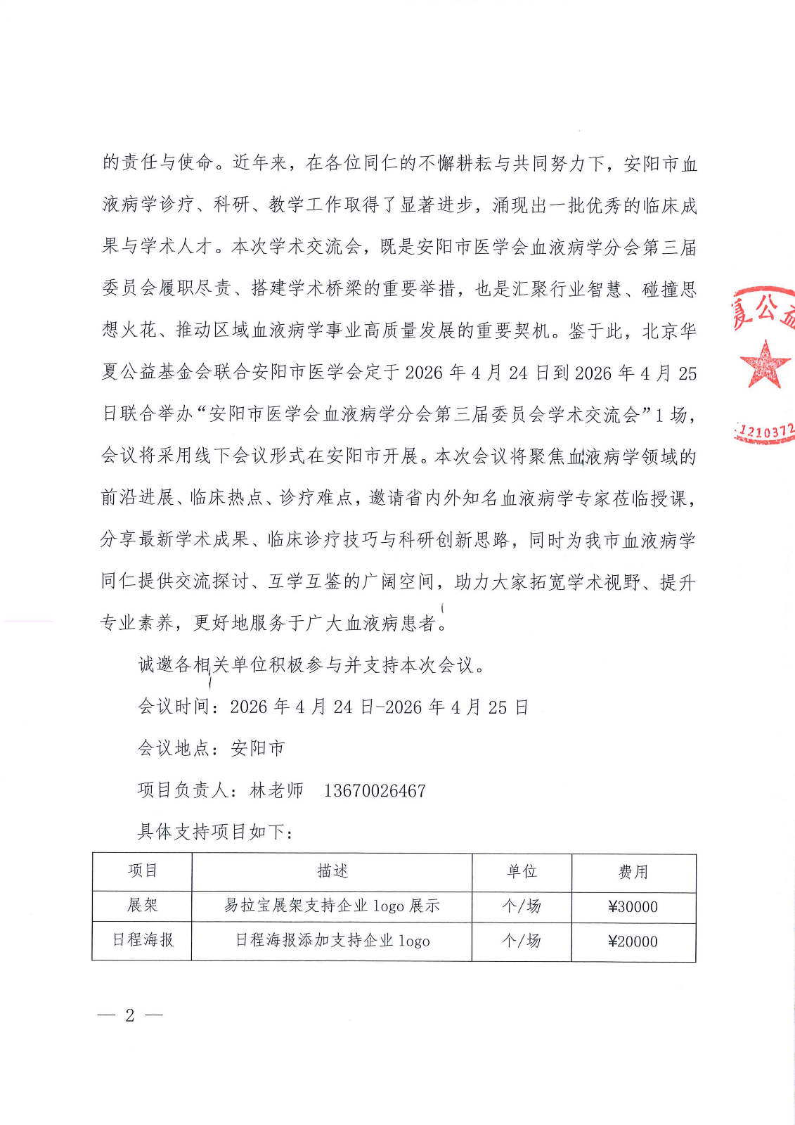 安阳市医学会血液病学分会第三届委员会学术交流会-支持函