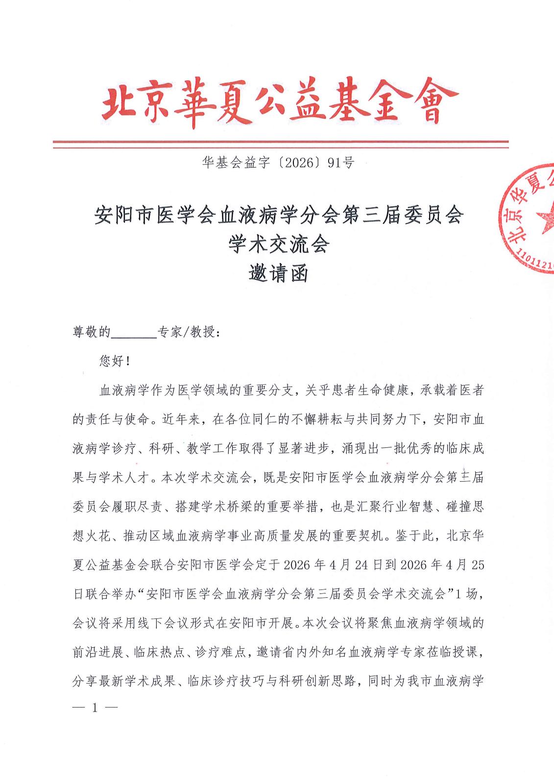 安阳市医学会血液病学分会第三届委员会学术交流会-邀请函