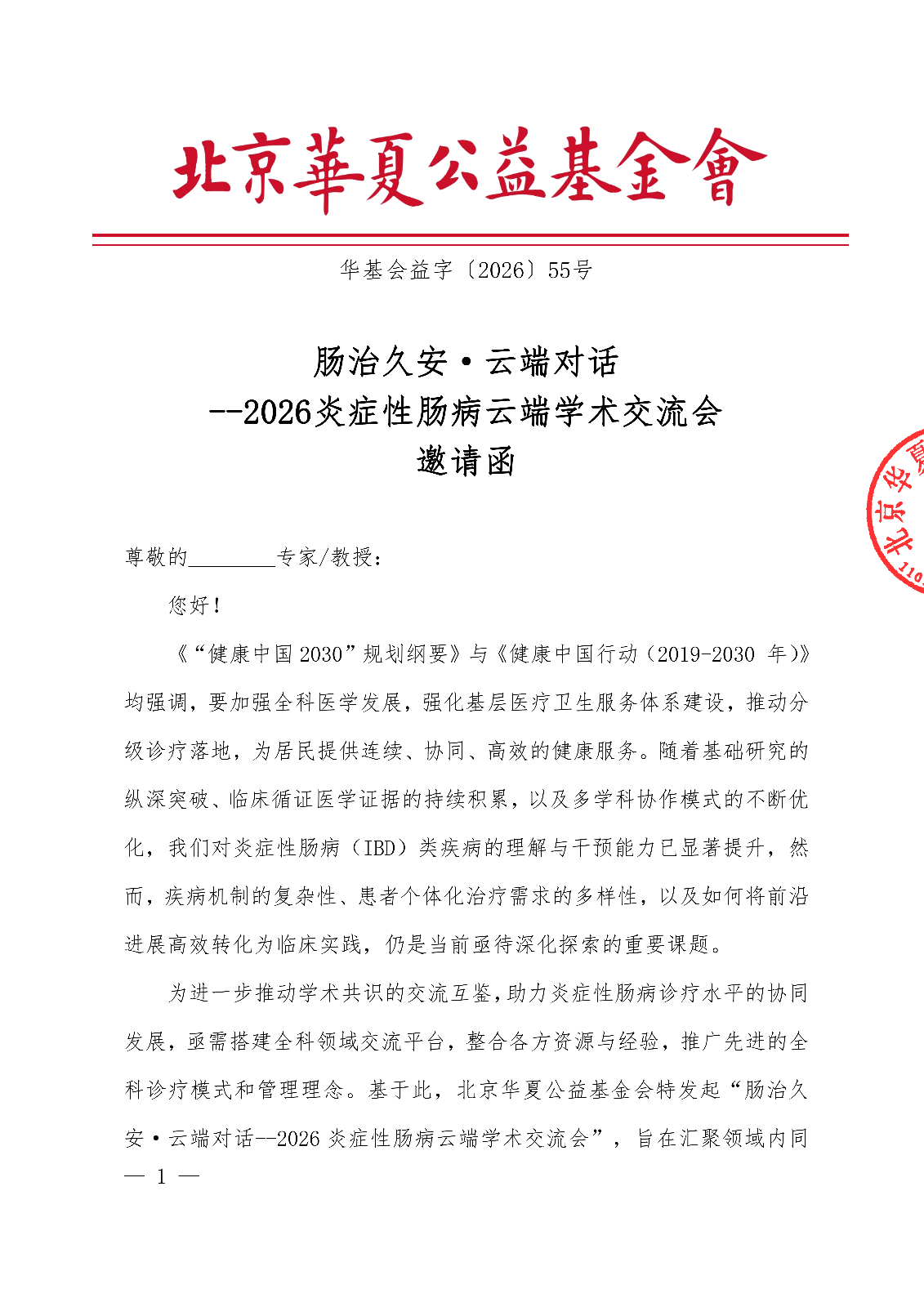 肠治久安·云端对话--2026炎症性肠病云端学术交流会-邀请函